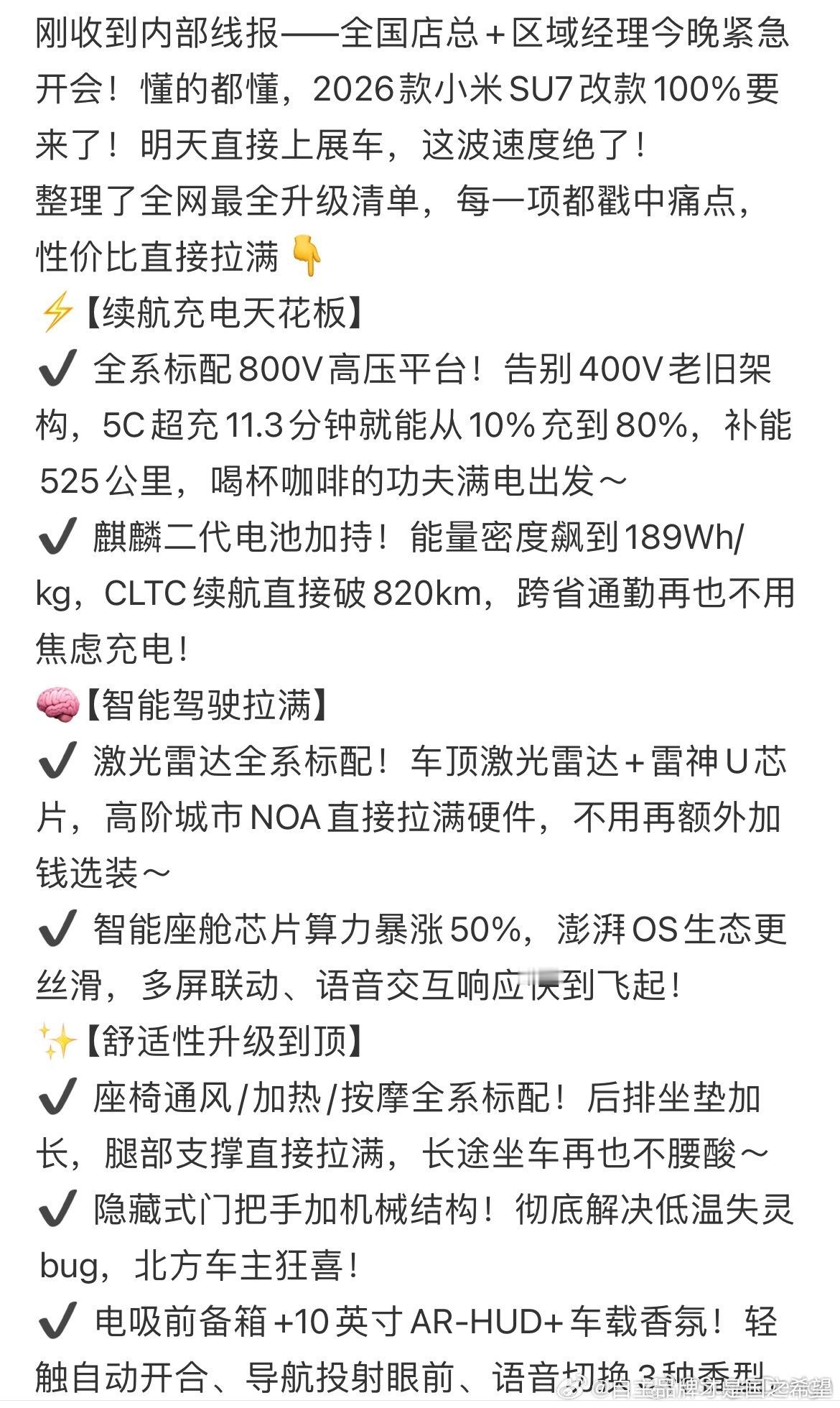 小米su7改款针对性的改进了大量痛点全系800v全系激光雷达机械门把手续航