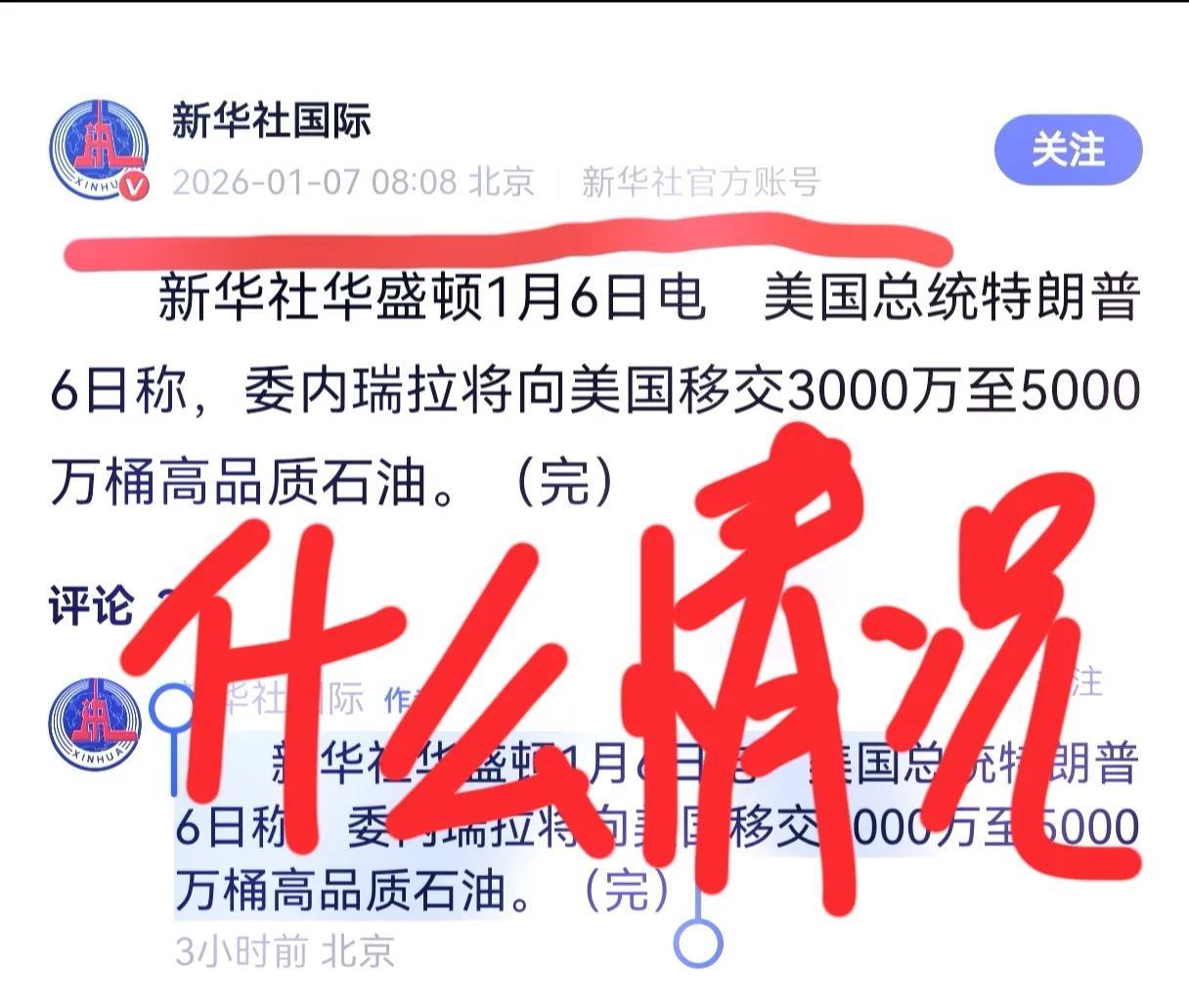 什么情况?委内瑞拉向美国移交巨量石油,卖的钱归特朗普管控,然后用于造福委内瑞拉和美国人民,这是什么谜之操作?委内瑞拉的石油人家自己不能卖呀?还非让你揩油! 前几天还说让美国石油公司进驻委内瑞拉,这是发现难度大让委内瑞拉送货上门了?把抢美化成移交也是没谁了?