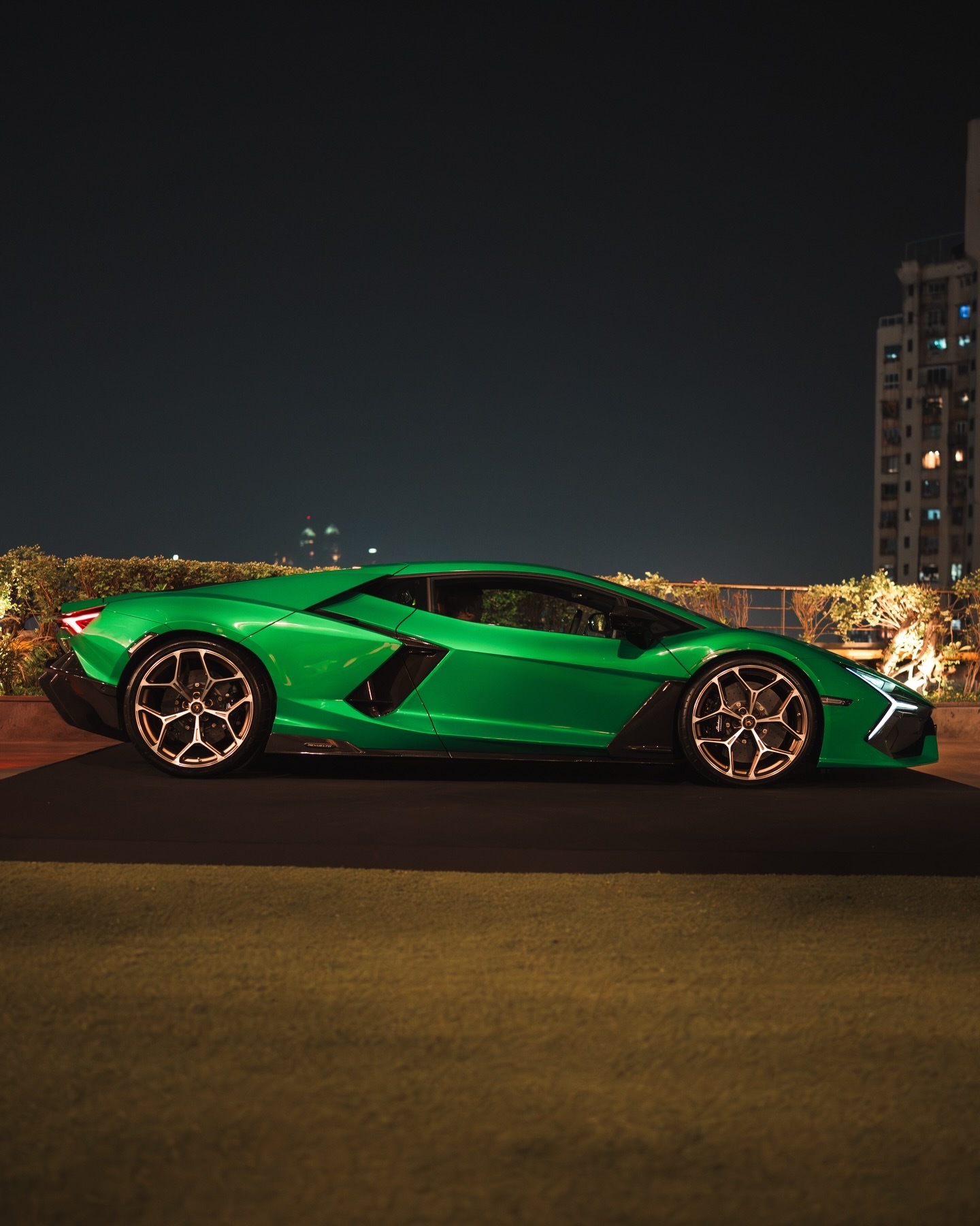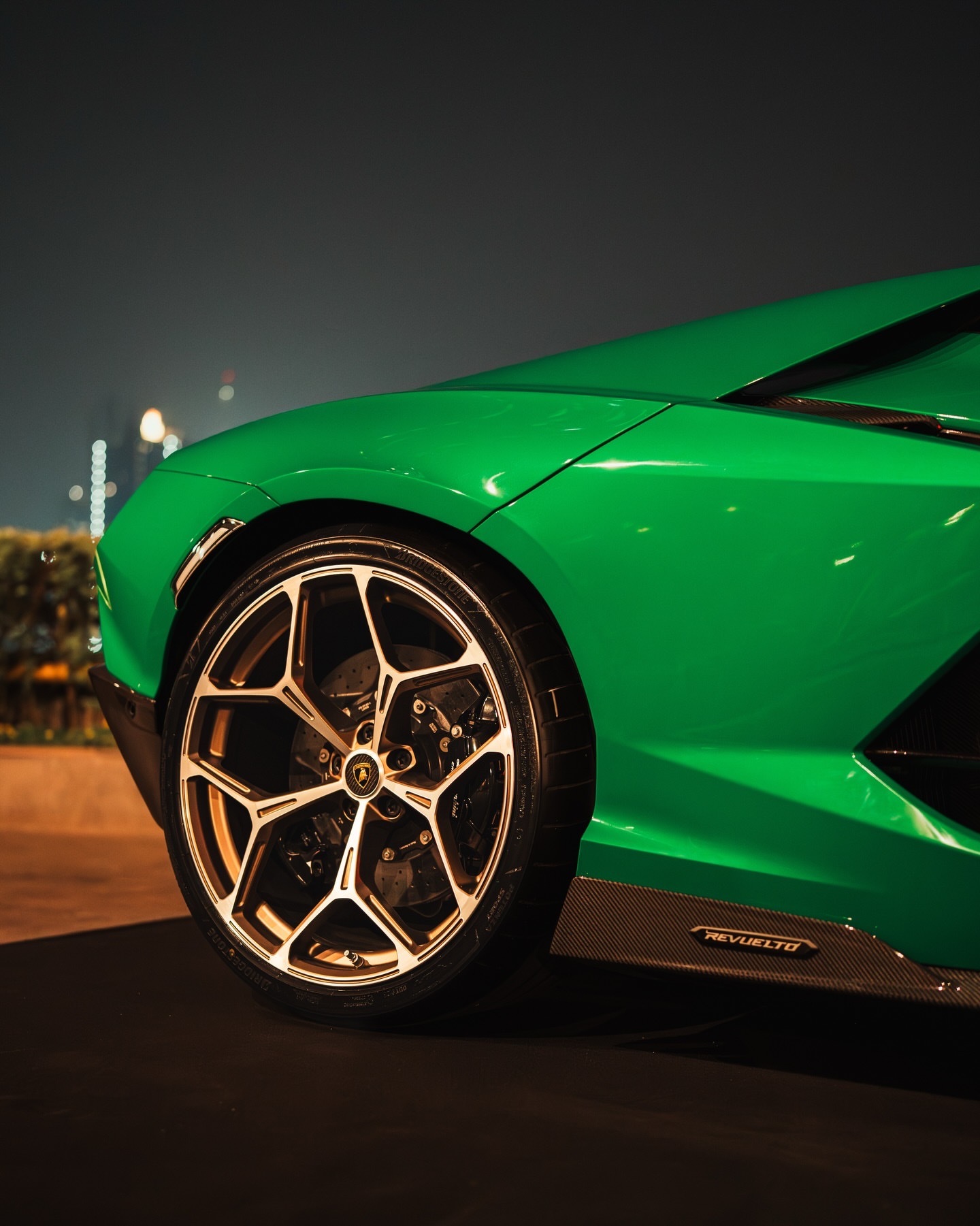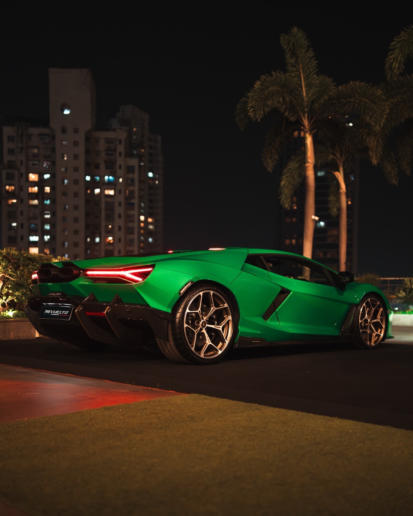 超越动力,是一场速度与风格的庆典。昨天,这台车的新车主在孟买举行了一场独家揭幕仪式,将一款Verde Metallic Revuelto纳入。从Bronzo Oreadi的装饰到Diamond Cut Altanero的轮毂,每一个细节都见证了Ad Personam的精神,完美搭配了无可妥协的碳纤维增强选配。兰博基尼Reveulto豪车超跑老纪侃车