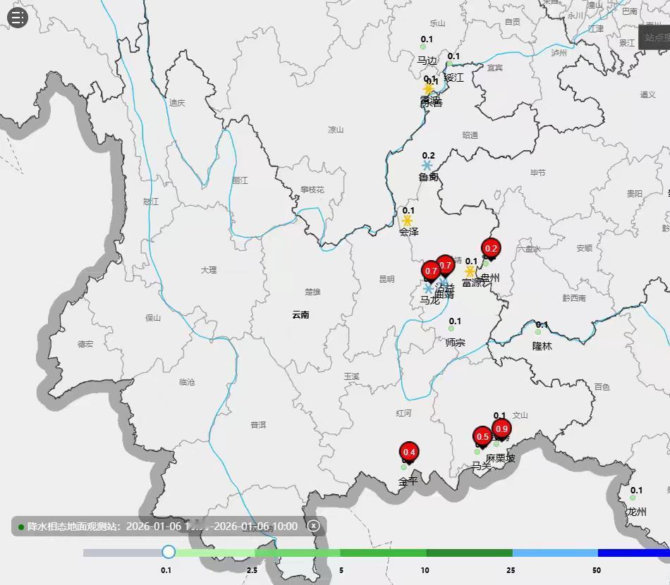 云南东部曲靖昭通出现降雪 🌨️1月6日上午,云南东部昭通鲁甸、镇雄、威信、曲靖会泽、富源、马龙、宣威、师宗都出现了降雪或雨夹雪,早晨昆明最低气温只有4.7℃、曲靖1.1℃、昭通-1.8℃、玉溪4.4℃、大理-0.4℃、丽江-3.7℃、香格里拉-10.9℃、西双版纳12.5℃。目前积雪分布在怒江、香格里拉、昭通、曲靖云南 天气 昆明 曲靖 昭通 玉溪 大理 丽江 香格里拉