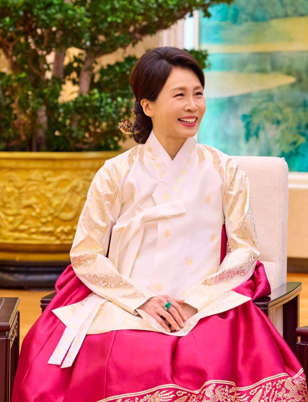 没有人会不喜欢她吧?这么多夫人里面,她的颜值、气质、着装、笑容都是无人能比。大家都说她是最有魅力的夫人,没有别人那种隔着距离的高贵高冷.她对每个人都有无法抗拒的亲和力,就像温暖人心的邻家大姐。 别的夫人来我们这里都是好吃好喝招待,而她是亲自下厨做美食招待各位朋友,这样的待遇还是第一次遇到。她穿着浅蓝色围裙,弯腰鞠躬感谢大家的捧场,好有礼貌。很仔细地做韩式年糕汤,还往里面加了我们爱吃的饺子,好贴心啊。 她不光亲手给汤里加了分量很足的配料,还跟大家愉快唠家常,说每个妈妈做饭都会放很多配料,想让家里人吃得饱一点。这么实在接地气的话,惹得大家开心大笑,现场气氛很融洽。 一碗年糕汤情意重,象征友谊绵延不断。她没搞复杂的仪式,大家就像朋友做客一样,亲眼观看美食的制作过程,把他们吃年糕、我们吃饺子的习俗融到一起,这份用心一下子拉近了距离。 她的音容笑貌、言行举止,看上去很端庄贤惠,自然贴切,没有半点做作的感觉。她的肌肤状态和挺拔仪态,看上去就像30岁的成熟人妻,很难想象她今年将满60岁了。 优雅是岁月沉淀后的从容,她来到这里短短几天时间,穿搭优雅得体,仪态万千被演绎得淋漓尽致,大家都说她是东方女性的典范。