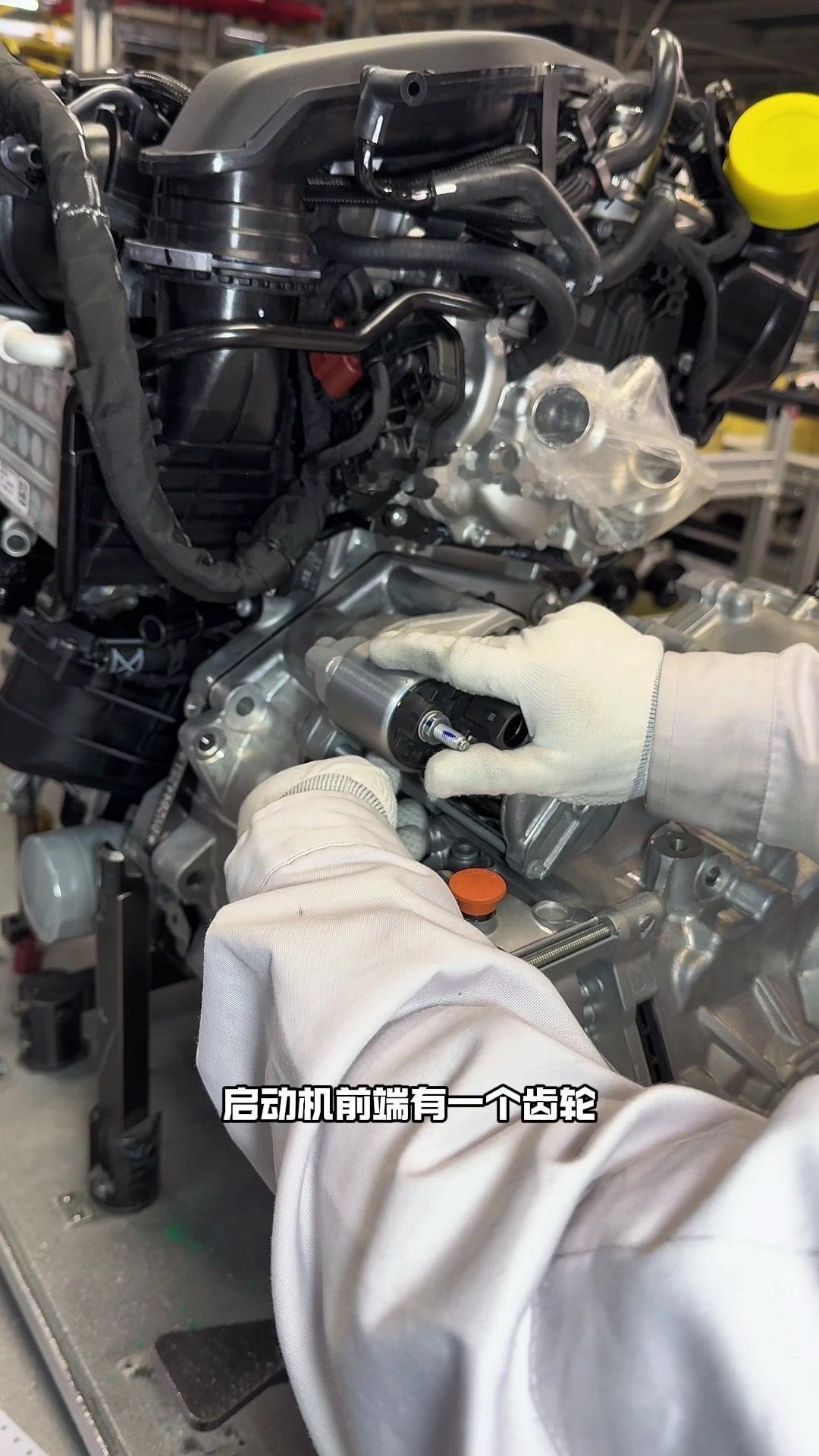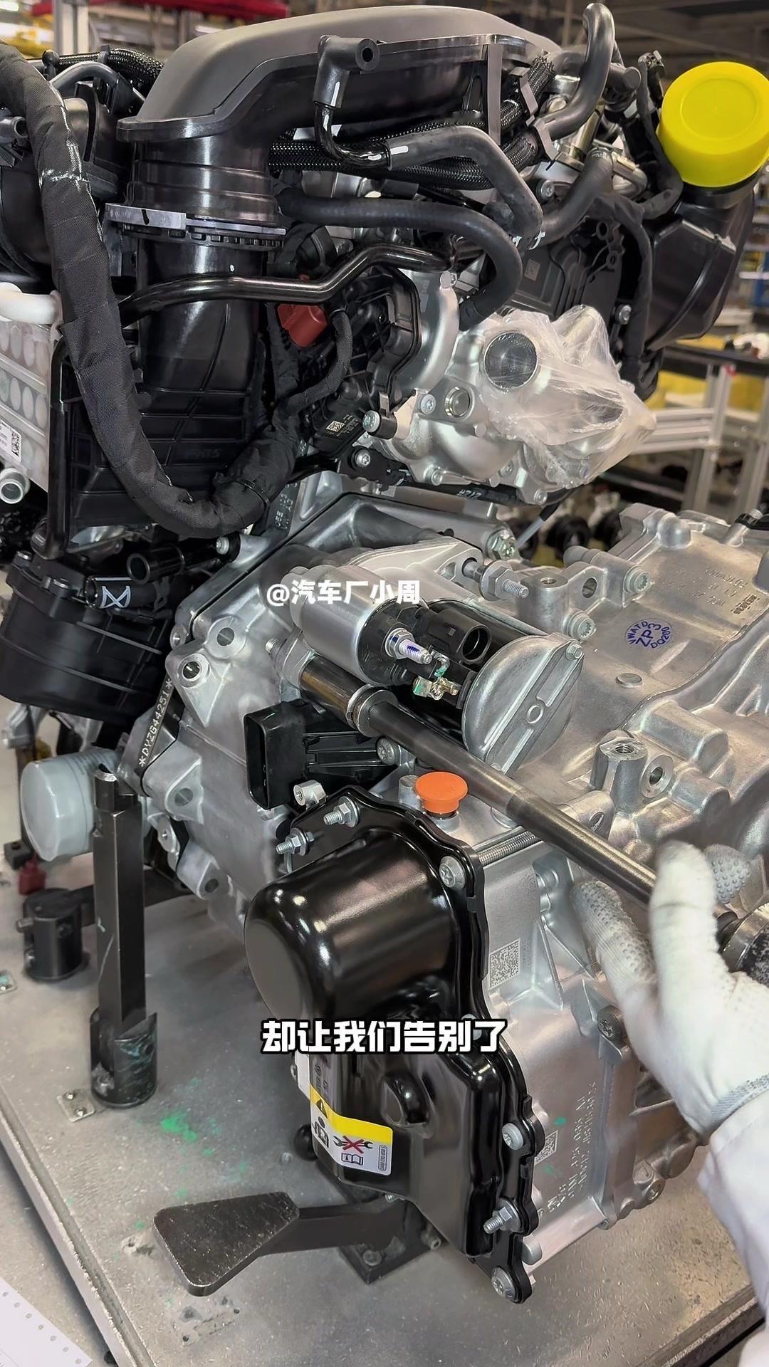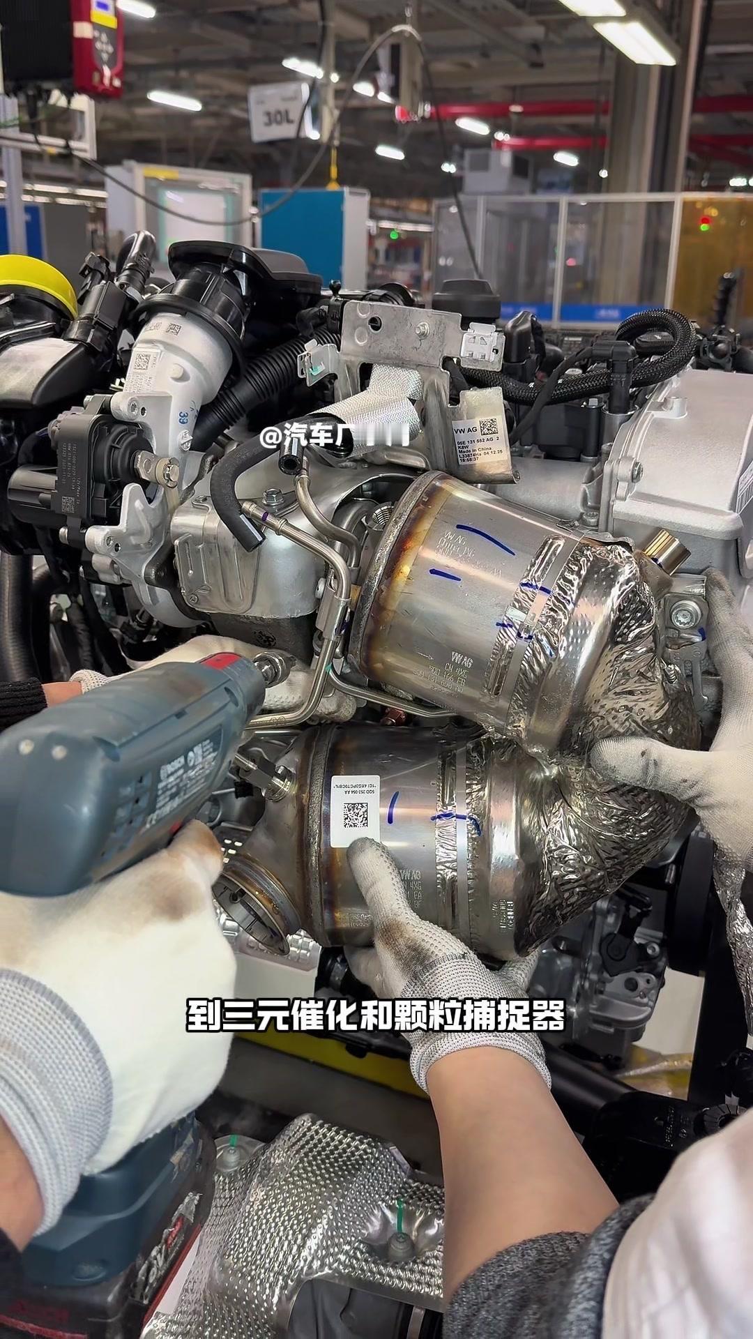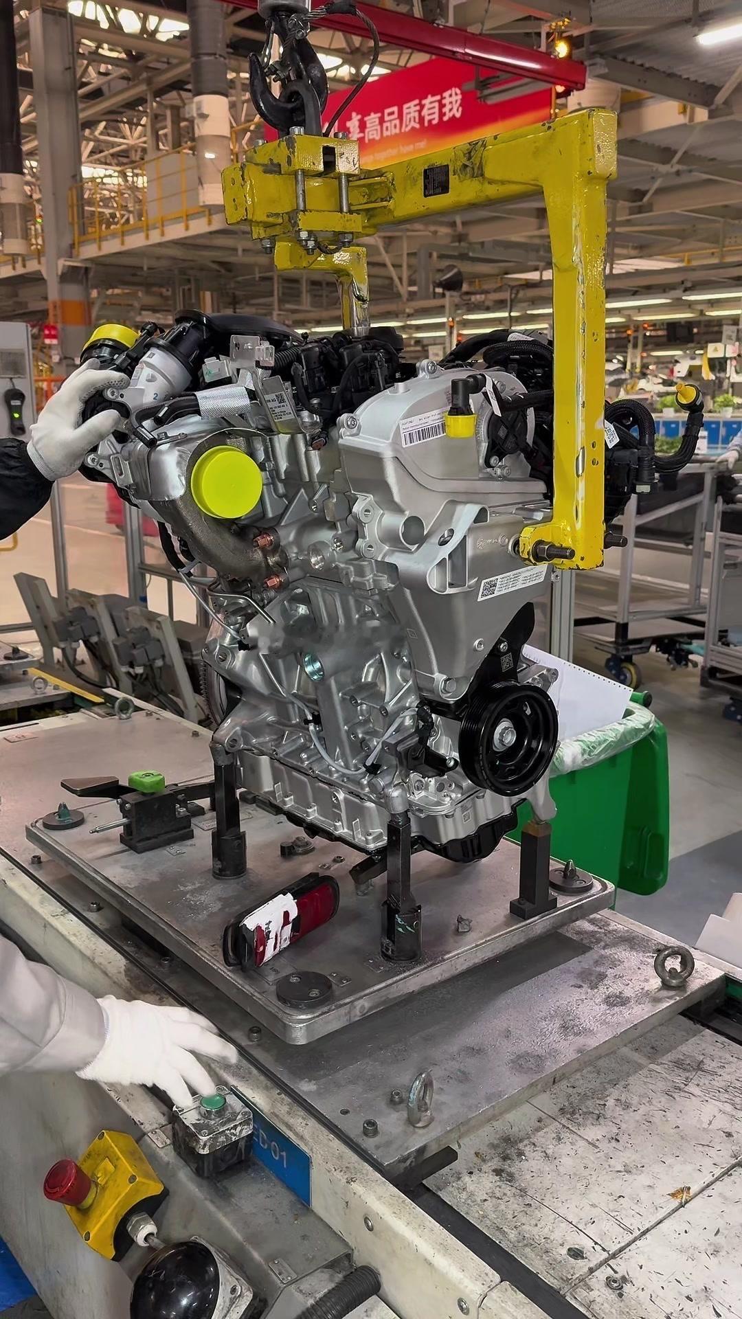 🔥揭秘速腾动力总成组装全过程!大众速腾动力总成组装原来这么多细节,今天带大家看个明白。 首先是吊装发动机,这款EA2111.5T发动机,功率118千瓦,峰值扭矩250牛米,动力参数很能打。接着进行发变结合,吊装代号DQ200的干式双离合变速箱,连接处用5颗德国进口螺钉固定,阿特拉斯拧紧机能保证力矩精度,数据还能保存15年,这装备看着就专业。 起动机装在发动机和变速箱之间,前端有齿轮,点火时伸出和飞轮相连,不愧是“最懒”零件,解放了双手。然后安装发电机和空调压缩机,发电机给电瓶充电,空调压缩机靠制冷剂循环制冷,自动化拧紧机(价值50万)负责紧固,机器包含电枪、伺服系统和存储系统,细节满满。 张紧轮调节皮带松紧,防止老化变形,旁边是多楔皮带(连接发电机和压缩机),还有内部的正时皮带(12万公里更换)。随后动力部分通过自动化设备转运到副车架装配线,副车架集成了麦弗逊悬架、方向机、转向拉杆等部件,难怪叫“副车架”。 发动机冷却管路很讲究,装了随动泵(自然吸气车没有)给中冷器降温,冷却水管用异丙醇软化后安装,再密封接口。半轴分长短轴,用对角紧固法安装并做标记,接着是减震器、刹车盘和转向节的连接,大力矩螺钉自动紧固。 三元催化和颗粒捕捉器是偶合式设计,靠近发动机能防堵塞,前端排气管是谐振器,后端是消音器,1.5T单边双出,高温材质不防锈属正常。最后装弹簧和后滑柱(减震器),刹车制动管含10多层复合材料,树脂油箱比铁质更安全且防燃,隔热瓦和换挡装置也依次到位。 最后动力底盘通过西门子设备(16个点位精准结合)和车身组装,EA2111.5T的动力总成就这么诞生了。