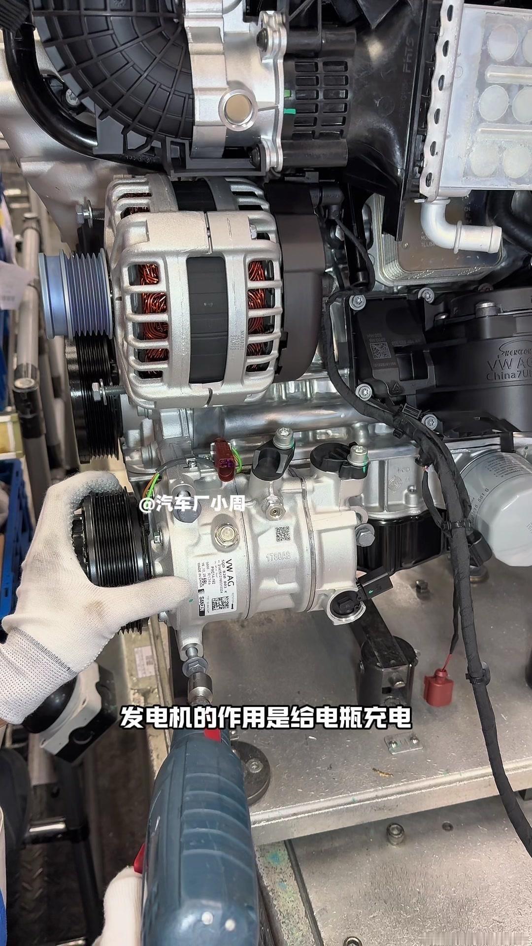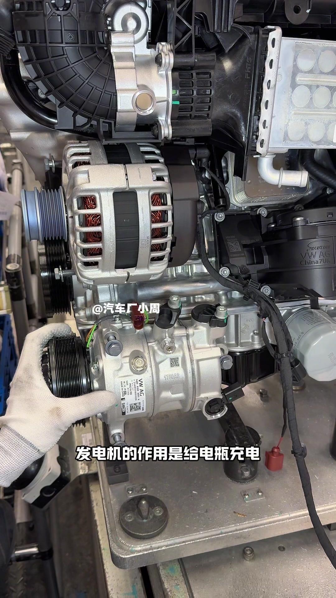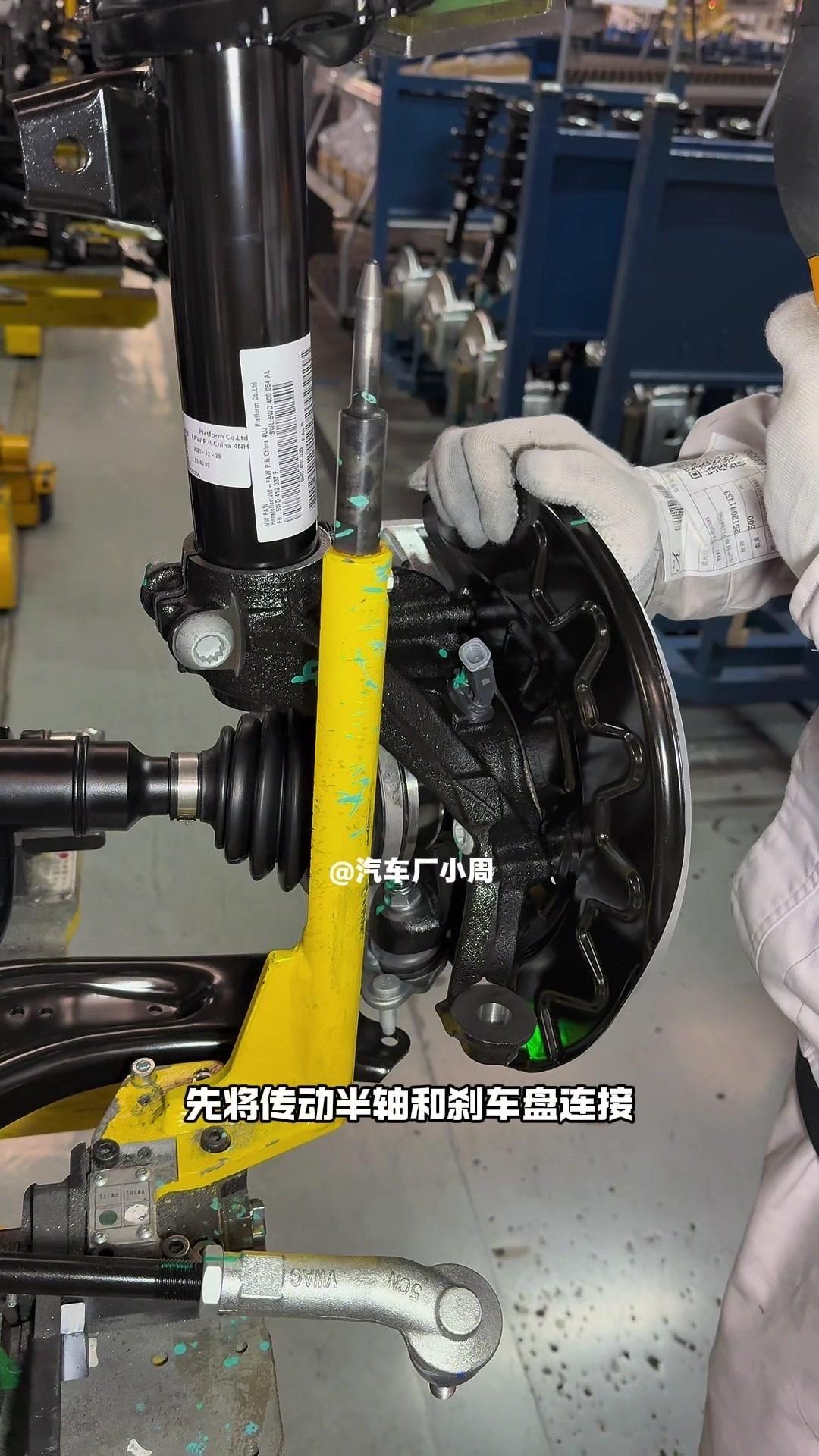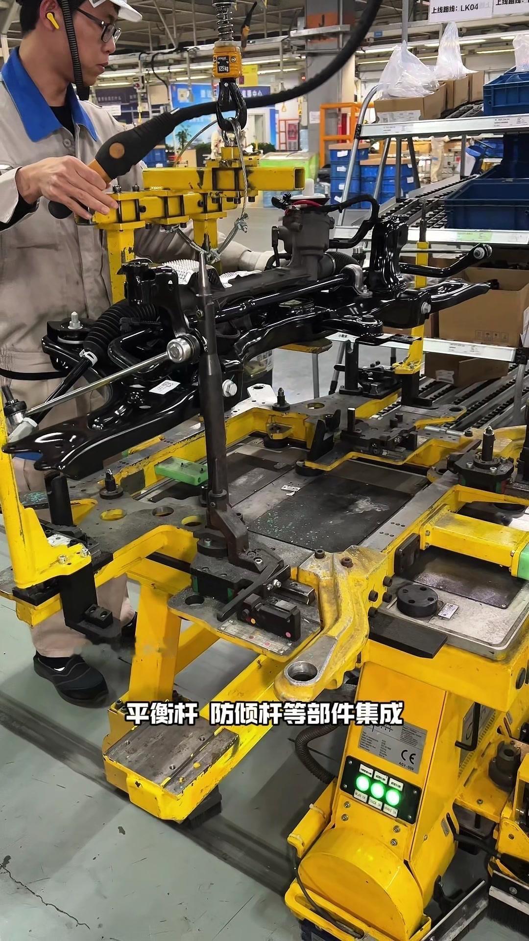 🔥揭秘速腾动力总成组装全过程!大众速腾动力总成组装原来这么多细节,今天带大家看个明白。 首先是吊装发动机,这款EA2111.5T发动机,功率118千瓦,峰值扭矩250牛米,动力参数很能打。接着进行发变结合,吊装代号DQ200的干式双离合变速箱,连接处用5颗德国进口螺钉固定,阿特拉斯拧紧机能保证力矩精度,数据还能保存15年,这装备看着就专业。 起动机装在发动机和变速箱之间,前端有齿轮,点火时伸出和飞轮相连,不愧是“最懒”零件,解放了双手。然后安装发电机和空调压缩机,发电机给电瓶充电,空调压缩机靠制冷剂循环制冷,自动化拧紧机(价值50万)负责紧固,机器包含电枪、伺服系统和存储系统,细节满满。 张紧轮调节皮带松紧,防止老化变形,旁边是多楔皮带(连接发电机和压缩机),还有内部的正时皮带(12万公里更换)。随后动力部分通过自动化设备转运到副车架装配线,副车架集成了麦弗逊悬架、方向机、转向拉杆等部件,难怪叫“副车架”。 发动机冷却管路很讲究,装了随动泵(自然吸气车没有)给中冷器降温,冷却水管用异丙醇软化后安装,再密封接口。半轴分长短轴,用对角紧固法安装并做标记,接着是减震器、刹车盘和转向节的连接,大力矩螺钉自动紧固。 三元催化和颗粒捕捉器是偶合式设计,靠近发动机能防堵塞,前端排气管是谐振器,后端是消音器,1.5T单边双出,高温材质不防锈属正常。最后装弹簧和后滑柱(减震器),刹车制动管含10多层复合材料,树脂油箱比铁质更安全且防燃,隔热瓦和换挡装置也依次到位。 最后动力底盘通过西门子设备(16个点位精准结合)和车身组装,EA2111.5T的动力总成就这么诞生了。