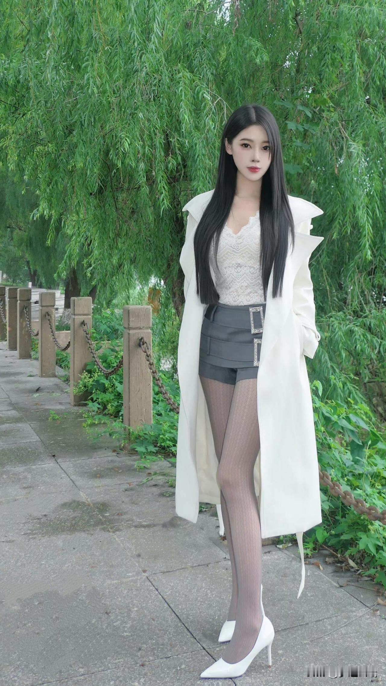 绿柳依依拂面来,白衣飘飘入画来。