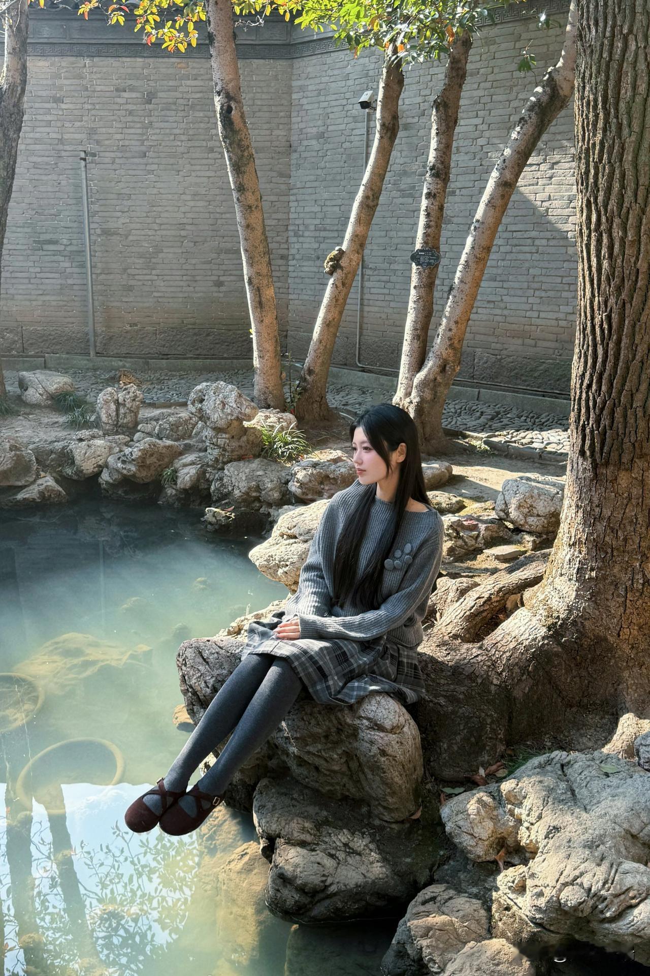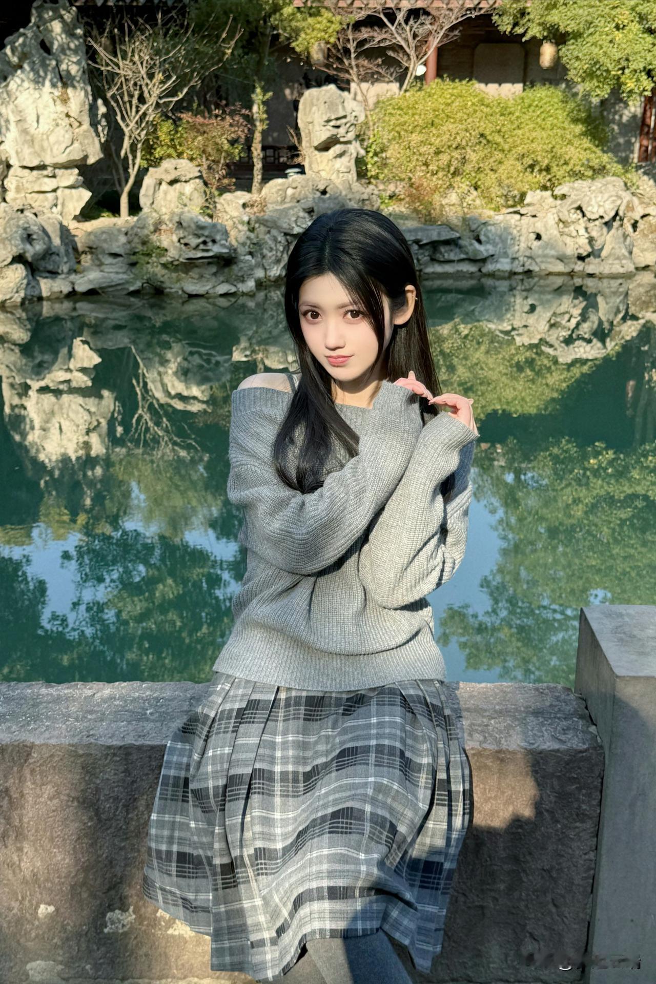 元气少女在古风园林中静坐,清新自然,元气满满!🌿👧🏻