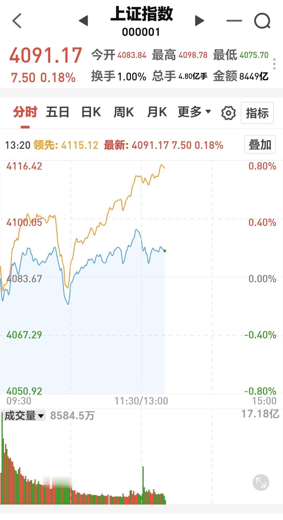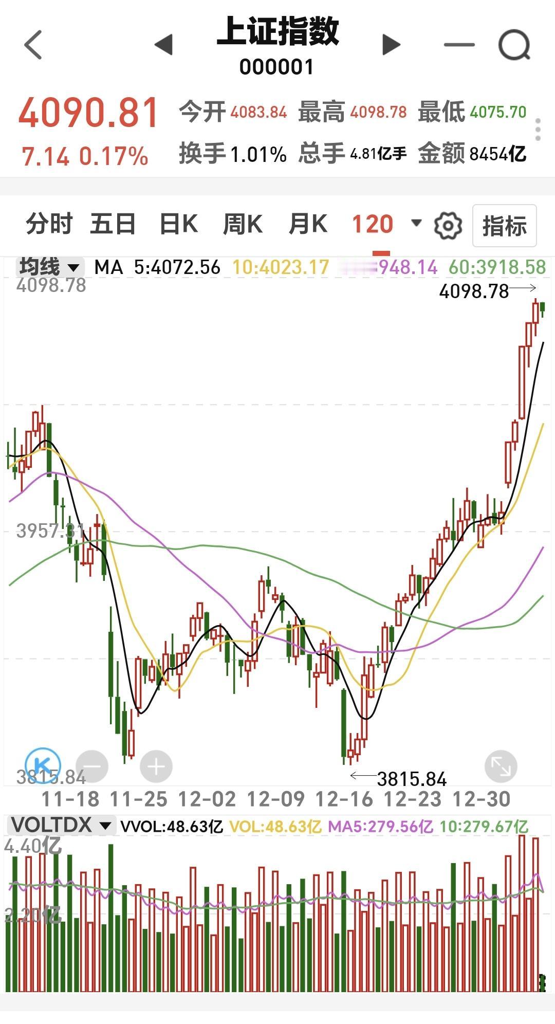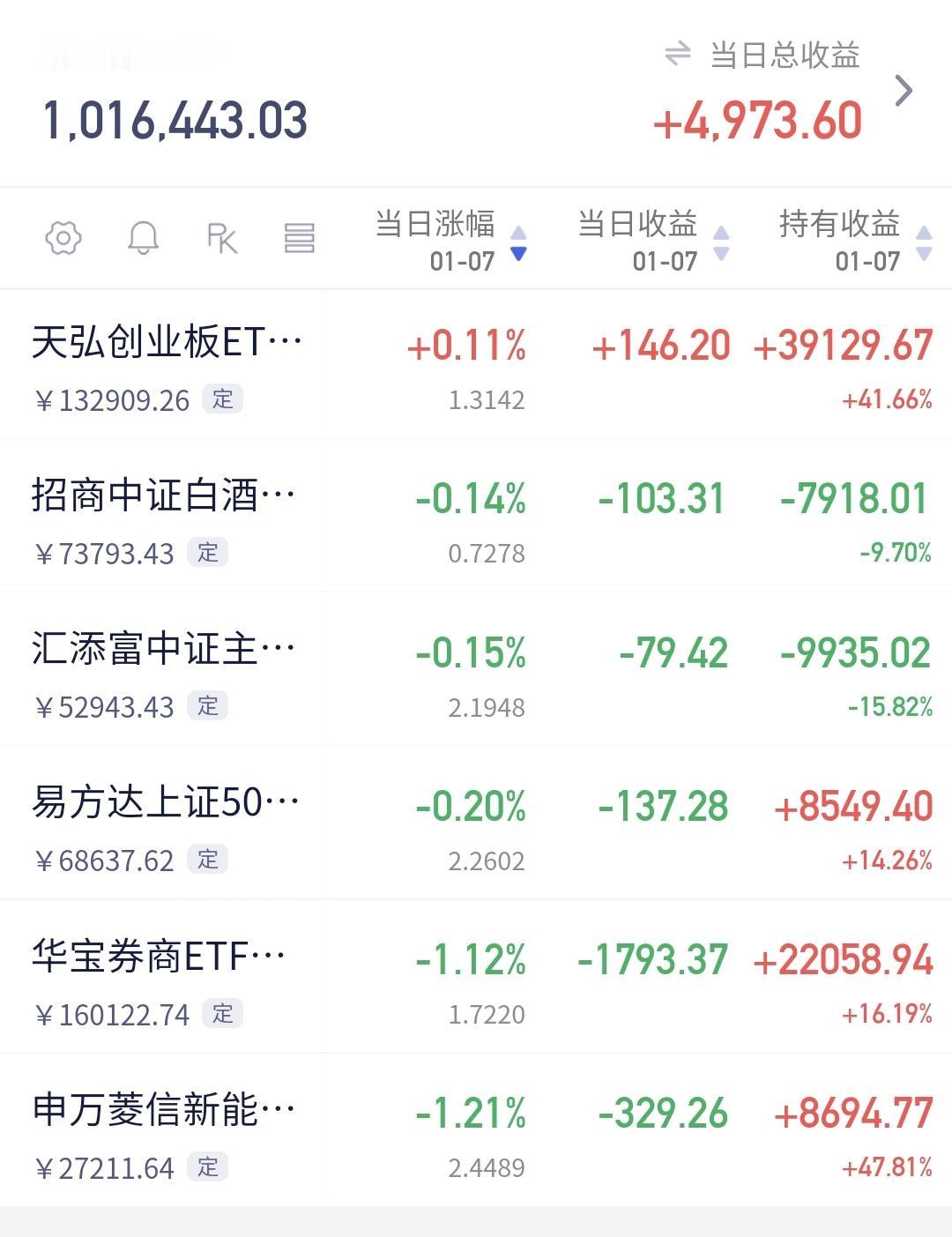 基金:市场这一轮的上涨有没有结束 今天市场下午开盘以后小幅度震荡,三大指数还是保持着红盘,创业板指上涨了0.15%,盘中点位3324点,上证指数上涨了0.20%,盘中点位4091点。 整个股票市场,上涨2661家,下跌2650家,涨停94家,跌停7家,上涨家数多于下跌家数。 持有的基金中,盘中估值上涨幅度最大的三个板块是:医疗板块,芯片半导体板块,先进制造板块,估值下跌幅度最大的三个板块是:新能源汽车板块,证券板块,上证50板块,估值整体上涨了4919元。 整个基金市场,上涨8003家,下跌10896家,上涨幅度超过5%的47家,没有下跌幅度超过5%的基金。 图9是今天基金的上涨排行榜,图10是今天基金的下跌排行榜,图11是ETF上涨幅度排行榜,图12是今天基金的加仓榜,图13是今天基金的减仓榜。 1:下午盘中的黄色线还是保持在蓝色线上方,两条线之间的敞口还是比较大,所以,只要两条线之间的敞口不缩小,今天下午大幅度跳水的可能性就很小,即使跳下去,也有可能会拉回头,今天收中大阴线的可能性不大,小阴线都不能代表这轮上涨已经结束,因为没有见到人声鼎沸,因为我的评论区还没有许多人来责怪我,如果看到我的评论区,有许多人在责怪因为我的半仓而影响了他的挣钱,那个时候的高点级别就比较大了,我估计这个高点会在4100点上方,所以,市场这一轮的上涨还没有结束。 2:今天两市累计成交20296亿,相比于昨天同期放量了3%,成交量放大的幅度在越来越小,资金进场的意愿在越来越弱。 3:我们来看一下下面的截图14,这是主力资金进出板块的情况,主力资金净流入最多的三个板块是:通信设备板块,通信板块,芯片半导体板块,主力资金净流出最多的三个板块是:机器人板块,esg板块,人工智能板块。 我们来看一下今天主力资金净流出最多的机器人板块的情况,看下面的截图15,这是机器人板块日K线图,从图中可以看出,我画了两条倾斜向上的斜线,这是机器人板块日线级别短期上涨通道。前段时间上涨突破了这个上涨通道的上轨,进入了加速上涨走势,这个地方可以持有,不可以追涨。 我们来看一下下面的截图16,这是机器人板块周K线图,从图中可以看出,我画了两条倾斜向上的斜线,这是机器人板块周线级别上涨通道,现在的位置处于这个上涨通道内,也就是说,机器人板块周线级别处于上涨趋势中,机器人板块大方向向上。 我们来看一下另一个主力资金净流出比较多的板块人工智能,看下面的地图17,这是人工智能板块日K线图,从图中可以看出,我画了一条倾斜向下的斜线,这是人工智能板块日线级别短期下跌趋势线。前几天上涨突破了这条下跌趋势线,也就是说,人工智能板块日线级别下跌趋势有可能已经被改变。 我们来看一下下面的截图18,这是人工智能板块周K线图,从图中可以看出,我画了一条倾斜向下的斜线,这是人工智能板块周线级别短期下跌趋势线,本周的上涨突破了这条下跌趋势线,是不是有效突破,还需要继去观察。 2026年开年以后大涨,这是一个梦幻开局,这是很多年以来没有过的开局,许多人看到这样的开局就飘了,认为后面会一直像这样涨上去,认为后面会一直像现在这样持续挣钱,市场哪有这么简单,市场的钱哪有这么容易挣,如果真的可以这样轻松挣钱的话,现在工厂里面根本没有一个打工的人,都会把自己的存款拿出来涌进市场了,事实上,并不是这样的。 市场连续上涨以后,我们需要考虑的是不是要落袋为安,而不是考虑要不要进场追涨,市场连续下跌以后,我们需要考虑的是不是要低位捞一些筹码,而不是考虑要不要割肉,追涨也有可能会有盈利,但收益风险比例不好,低位进场也有可能会有亏损,但收益风险比较好,我们玩基金就是要玩的一个大概率,小概率挣钱的事情我们不做。 今天究竟应该怎么办?我会在评论区留言。 我每天都会分享我的观点,我的观点只代表我个人的看法,不能作为你操作的依据,据此操作后果自负。
