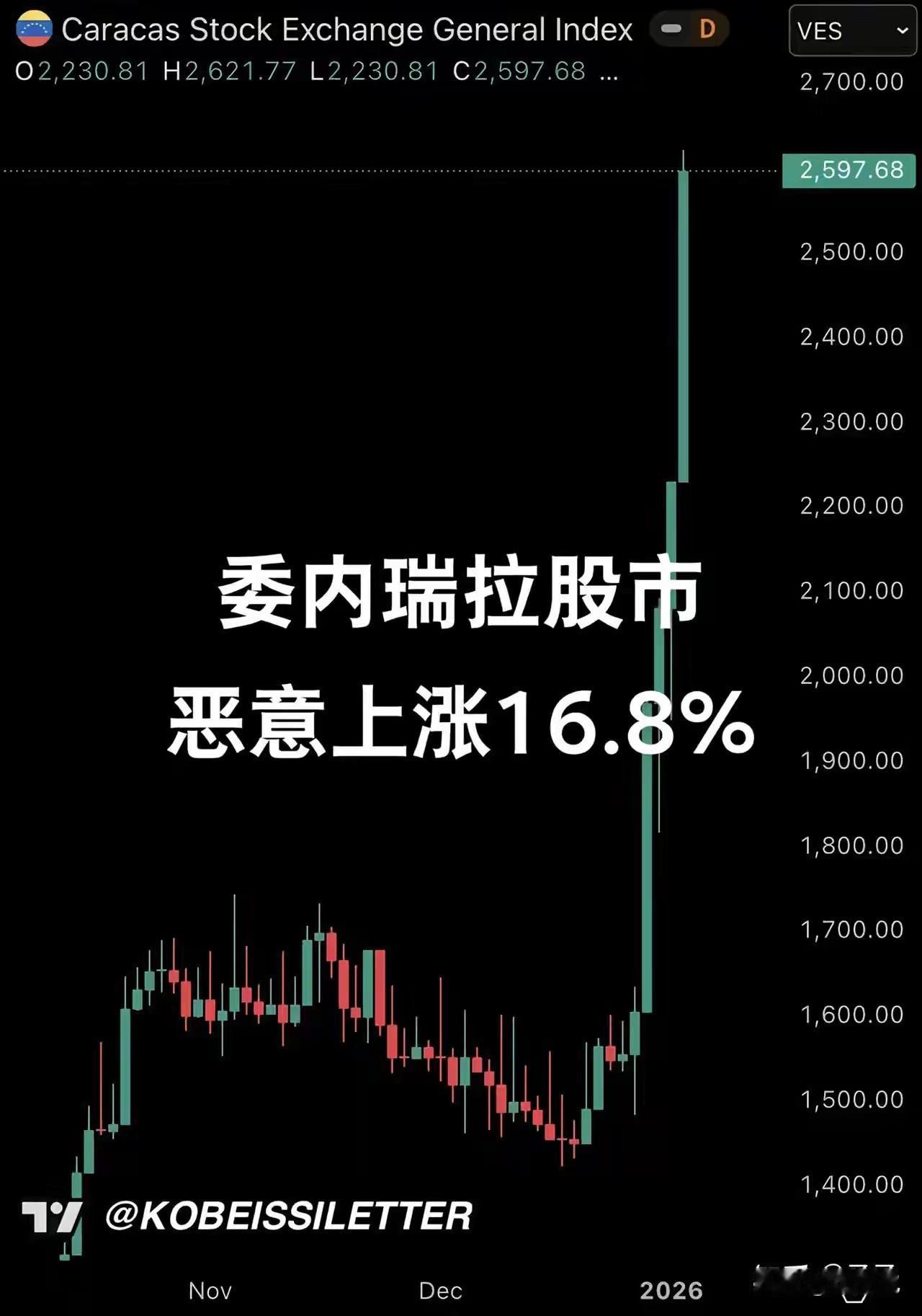 [灵光一闪]委内瑞拉股票大涨是真的? 豆包:是真的。 委内瑞拉加拉加斯股市IBC指数在马杜罗被捕后连续暴涨,两日累计涨幅约67%,近两周涨超148%,主要因投资者押注政权更迭与制裁放松,预期石油与金融领域迎来转机。