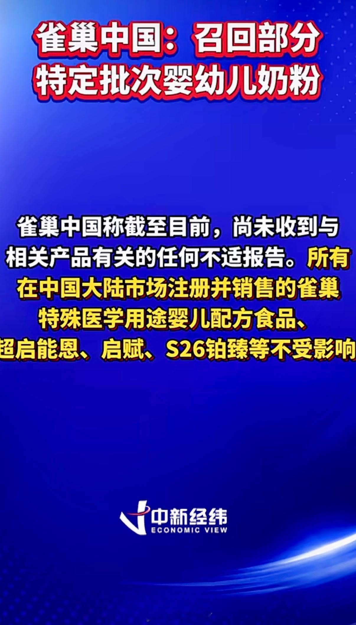 ⚠️紧急提醒: 雀巢刚刚在全球召回一批婴儿奶粉!原因是:部分批次的SMA婴儿奶粉(包括后续阶段的配方)可能含有毒素,宝宝喝了可能会恶心、呕吐现象。目前涉事产品已在多个国家下架。如果你家里有通过代购、海淘或亲友从国外带回的雀巢SMA、能恩、BEBA、Guigoz等欧洲版奶粉。安全第一!不确定是不是问题批次? 先停用,再核实! 宝宝的健康,一点都不能冒险。