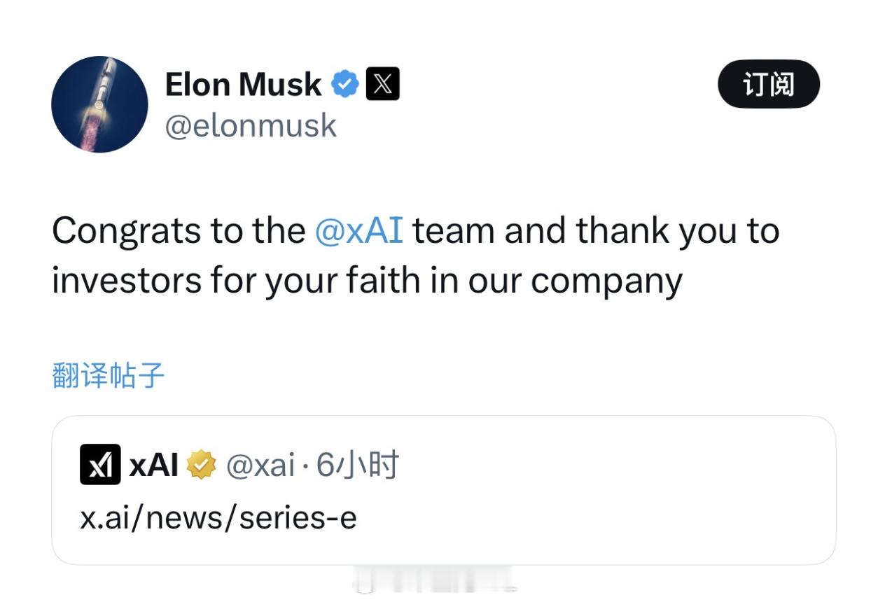 马斯克发文祝贺xAI团队融资 xAI官网发布已完成200亿美元E轮融资消息,老马发文祝贺xAI团队 xAi烧钱也烧得厉害了