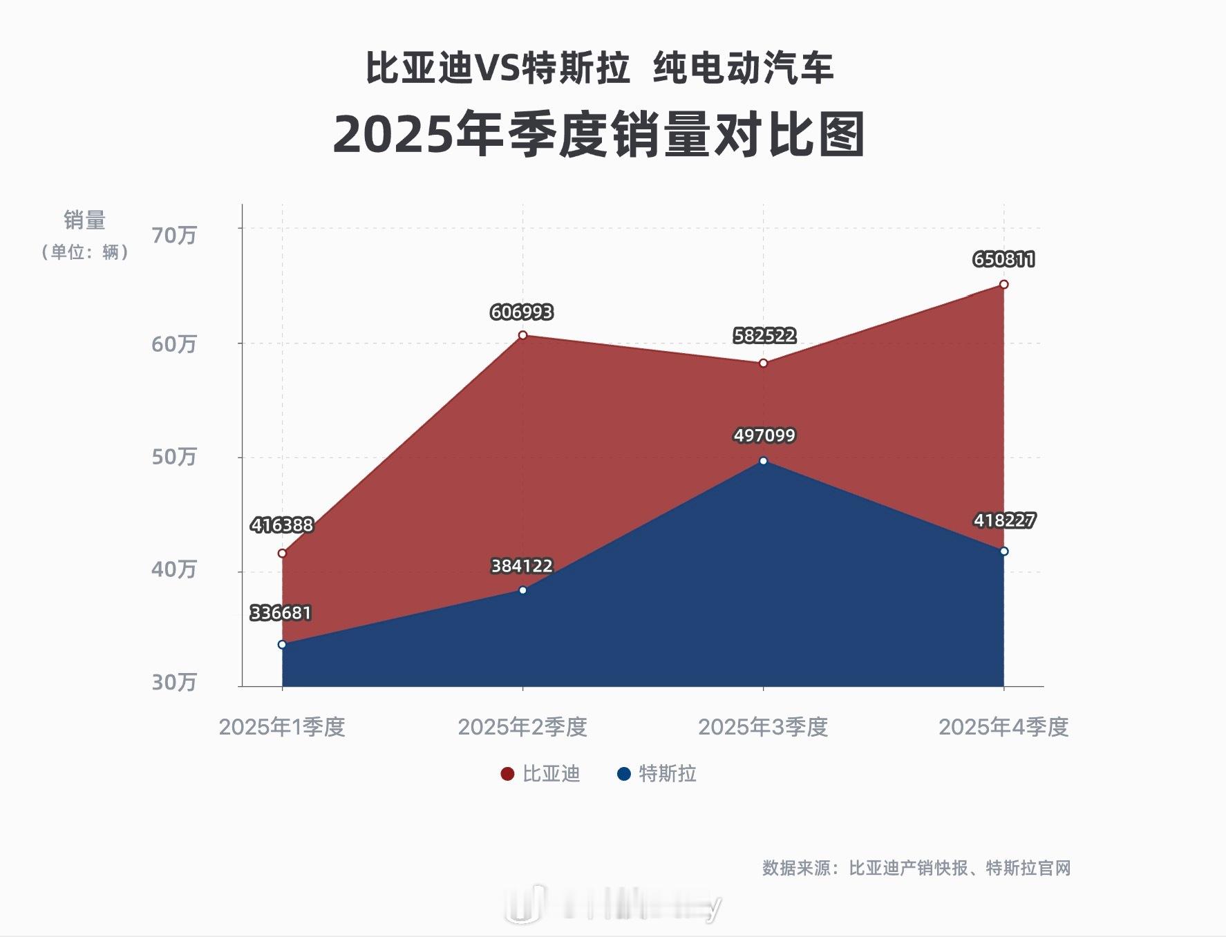 谁是新能源销冠,你以为是特斯拉?不不不你错了!当之无愧的新能源销冠还得是比亚迪!比亚迪2025年全年新能源汽车总销量达到460.2万辆,其中纯电动车型销量约为225.7万辆,同比增长27.86%。特斯拉2025年全球交付量为163.6万辆,同比出现8.6%的下滑,销量是趋势和势能最好的证明。特斯拉的时代已过,现在属于中国新能源,毕竟无论是智能化,还是充电效率,比亚迪的纯电车型,体验远超特斯拉。作为创新代表,中国新能源车型实打实地推动了纯电车型的普及,而比亚迪新能源汽车的业务已遍布全球六大洲、119个国家和地区,是当之无愧的新能源普及者。从“新能源汽车总量领先”到“纯电赛道登顶”的转变能够看出,无论插混,还是纯电,咱们中国车企的技术都实力领先。全球电动汽车产业进入新阶段,买车就选国产,大家新年买车有什么计划?