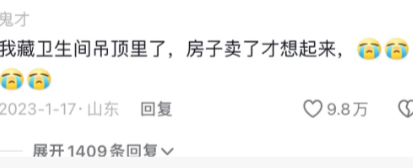 我藏卫生间吊顶里了,房子卖了才想起来