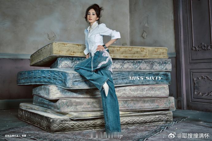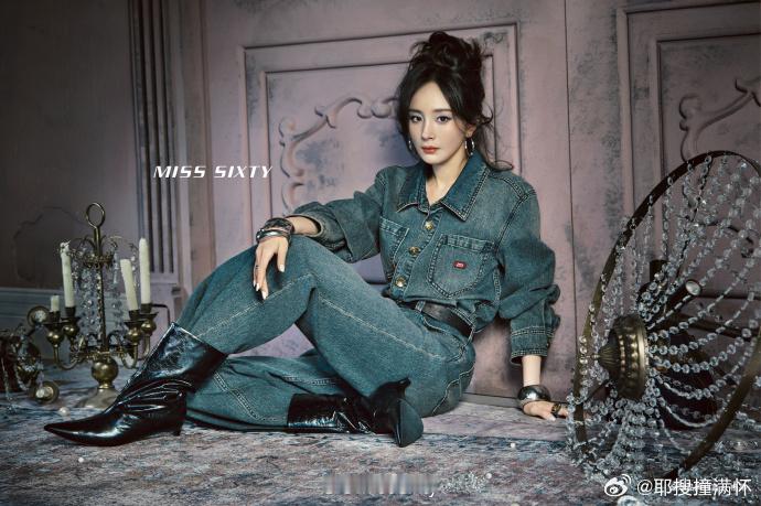 杨幂蓝色小烟熏杨幂牛仔辣妹幂姐时尚感封神!蓝色小烟熏搭牛仔,个性魅力太亮眼