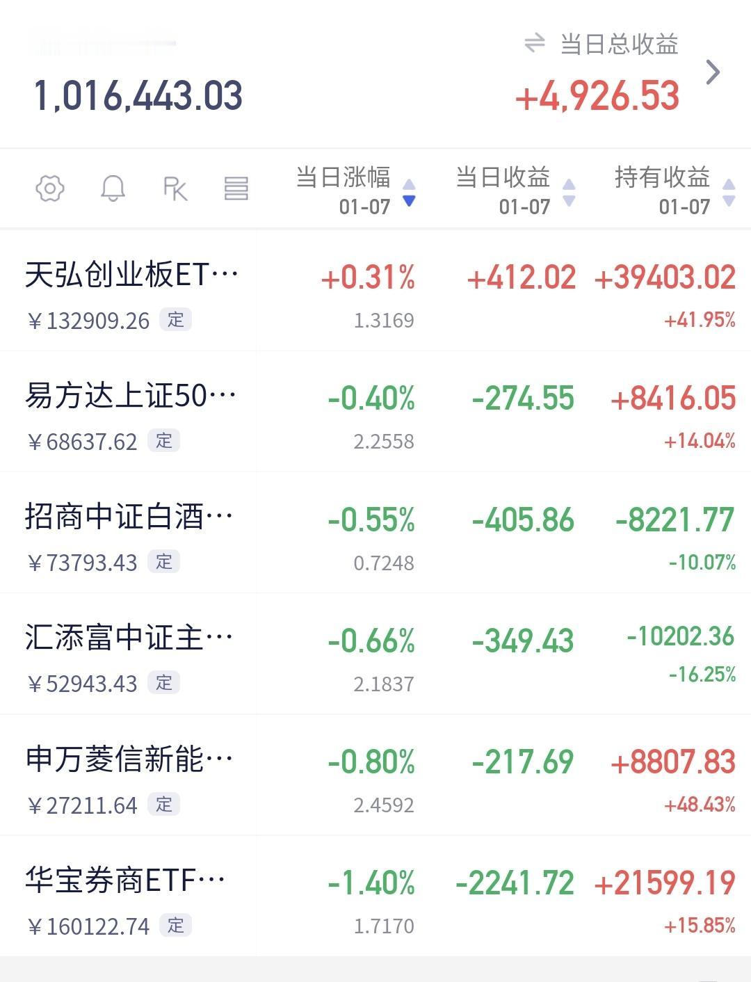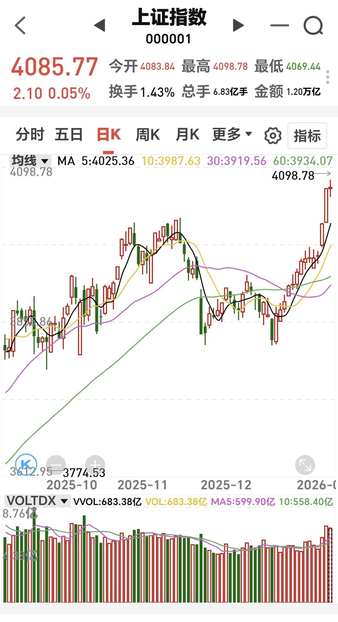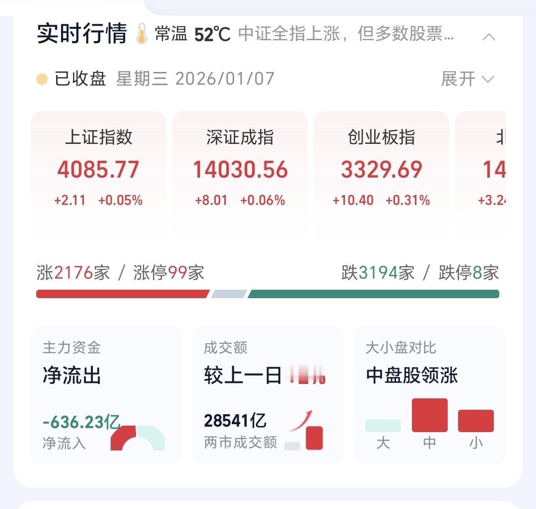 基金:周四会不会有15连阳 今天市场走势波澜不惊,创造了历史性的14连阳,创业板指上涨了0.31%,收于3329点,上证指数上涨了0.05%,收于4085点。 整个股票市场,上涨2176家,下跌3194家,涨停99家,跌停8家,上涨家数少于下跌家数。 今天两市累计成交28541亿,相比于昨天放量了2%,内资净流出800亿。 持有的基金中,下午收盘的时候,估值上涨幅度最大的三个板块是:医疗板块,芯片半导体板块,先进制造板块,估值下跌幅度最大的三个板块是:证券板块,新能源汽车板块,大消费板块,估值整体上涨了4926元。 整个基金市场,上涨7812家,下跌11174家,上涨78幅度超过5%的家,没有下跌幅度超过5%的基金。 图9是今天基金的上涨排行榜,图10是今天基金的下跌排行榜,图11是ETF上涨幅度排行榜,图12是今天基金的加仓榜,图13是今天基金的减仓榜。 1:今天市场能够翻红,能够收出14连阳的最大功臣,是黄色线在蓝色线上方,两条线之间的敞口比较大,这样的情况下,这即使跳水,也会被收回来,这样的情况下,即使跳水,下跌的幅度也不会很大。 2:今年的第一个交易日,成交量放大了20%,今天成交量放大幅度只有2%,说明市场位置越往上,资金进场意愿就越弱,当资金都不愿意进场,当资金都感受到风险的时候,调整自然而然就来了,但现在还没到那个时候。 3:我们来看一下下面的截图14,这是主力资金进出板块的情况,主力资金净流入最多的三个板块是:通信板块,通信设备板块,稀土永磁板块,主力资金净流出最多的三个板块是:Esg板块,机器人板块,蓝筹策略板块。 4:我们来看一下与我们持有的科技类基金息息相关的科创50板块,看下面的截图15,这是科创50板块日K线图,从图中可以看出,我画了两条倾斜向上的斜线,这是科创50板块日线级别上涨通道,星期一上涨突破了这个上涨通道的上轨,现在是处于加速上涨过程中,只有的人可以继续持有,想进场的人需要耐心等待。 我们来看一下下面的截图16,这是科创50板块周K线图,从图中可以看出,我画了两条倾斜向上的斜线,这是科创50板块周线级别上涨通道,现在的位置处于这个上涨通道内,也就是说,科创50板块周线级别处上涨趋势中,科创50板块大方向向上,科技类板块基金大方向向上。 5:我们来看一下下面的截图17,这是消费板块日K线图,从图中可以看出,我画了两条倾斜向下的斜线,这是消费板块日线级别下跌通道。前段时间上涨突破了这个下跌通道的上轨,也就是说,消费板块日线级别下跌趋势已经被改变。 我们来看一下下面的截图18,这是消费板块周k线图,从图中可以看出,我画了两条倾斜向上的斜线,这是消费板块周线级别上涨通道,前段时间跌破了这个上涨通道的下轨,本周的上涨又回到了上涨通道内,持有的人可以继续持有,除非再次跌破这个上涨通道的下轨,才可以考虑要不要止盈出来观望。 市场指数14连阳,好像是非常火热,但从我们持有的基金看,火热的程度并没有想象的那样强,今年3个交易日的收益已经达到了5万块钱以上,这个时候完全可以收手不干,因为这个收益已经把全年的银行利息拿到手了,这个时候完全可以等待一个哀鸿遍野的时间段,在那个时候进场,今年的收益也不一定会差。但许多人都是不愿意这样做的,包括我自己,我也不知道这一轮会上涨到什么时候,快速上涨的高度是不容易观察到的,快速上涨会增加尖顶的可能性,将来跑的位置,我估计也会是在4100点附近,因为不能保证在尖顶的尖尖上跑掉。 每个人都不要梦想跑在最高点,每个人也不要幻想进在最低点,每个人都不要梦想持有的都是热门板块,每个人也不要幻想回避掉低位板块,均衡配置才是最重要的,相对的高危区域离场,相对的低位区域进场,才是稳健的操作策略,我们并不是专业人士,不能以专业人士来要求我们,何况,在这样的市场里面,专业人士也经常显得不专业。 很多人关心,明天会不会继续上涨,明天会不会有15连阳,我认为,难度越来越大了,往上的连阳天数越多,后面的风险就越大,因为,往上的连阳天数越多,获利盘也会越来越多,当获利盘积累到一定的时候,达到一致性共识的时候,获利盘蜂拥而出的时候,就是那个尖尖点,明天的15连阳有点难,不深跌就谢天谢地了。 我每天都会分享我的观点,我的观点只代表我个人的看法,不能作为你操作的依据,据此操作后果自负。