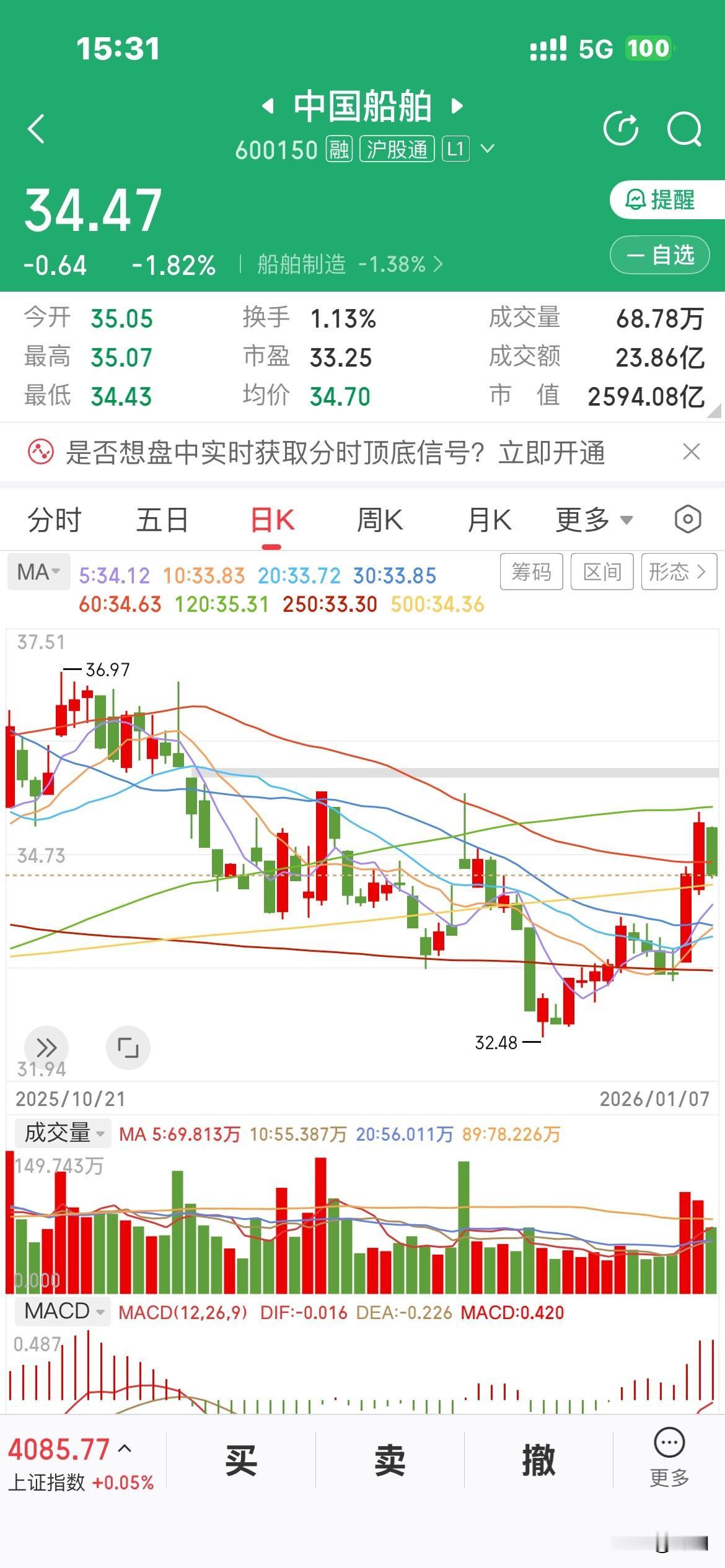 船舶会调整至何处 今日,船舶的调整如约而至。全天呈现低开低走态势,午后跌势稍有加速,最终收盘跌幅达1.82%,昨日的涨幅尽数回吐。看来“渣男板块”依旧本性难移。 此次调整会到什么程度呢? 我觉得首先关注5日线支撑,若跌破则看33.8的支撑位。别指望它还会大幅下挫。船舶ETF发行在即,场外资金即将入场。关键在于量能,若缩量至换手率0.5%左右,便是短线机会。 我们先还是走一步看一步,要是主力执意打压,前期低点也是上车的好时机。 简而言之,长线投资者还是持股不动为妙。今年的行情值得期待! 船舶 船舶行情 船舶走势 中国船舶
