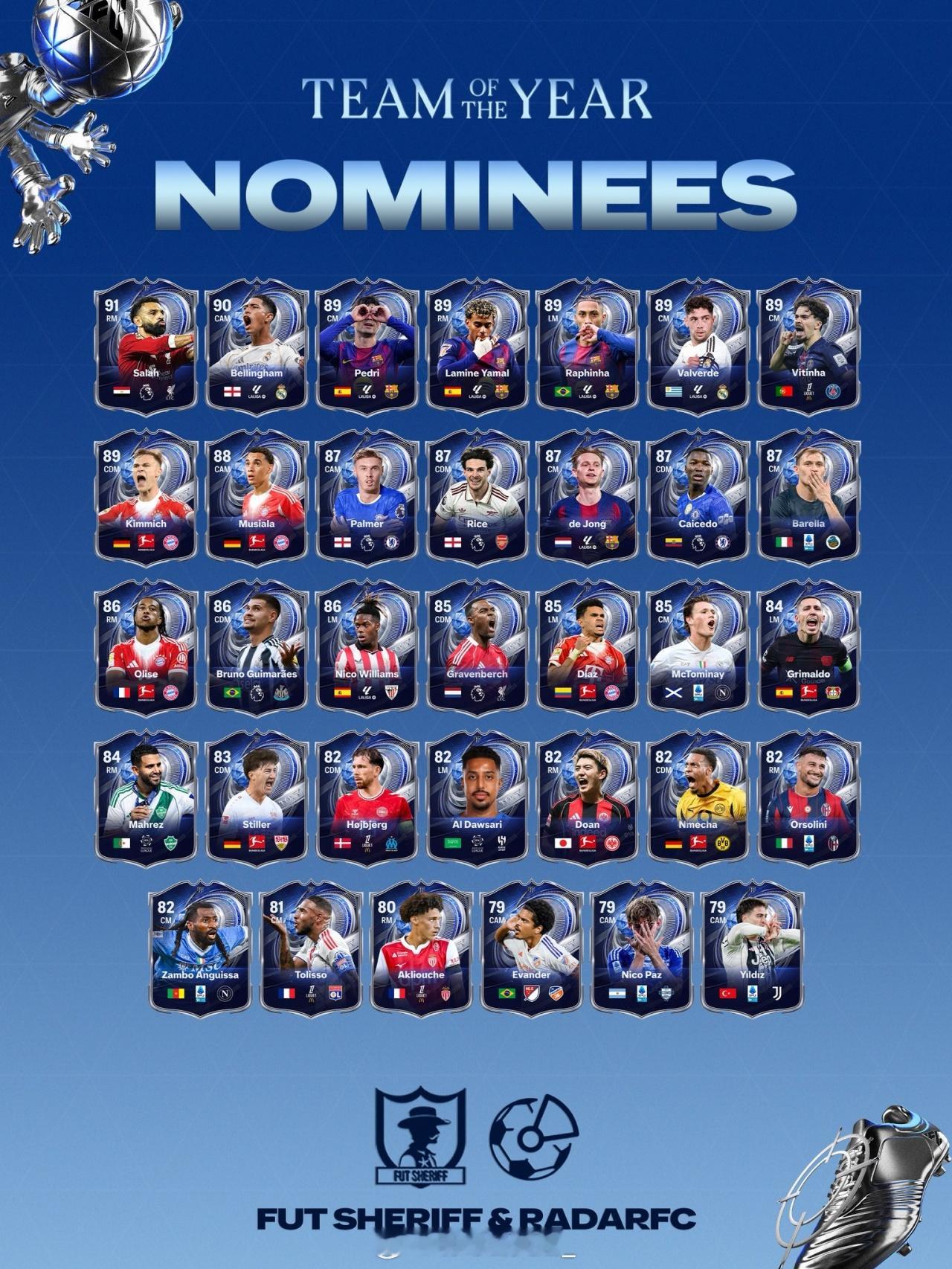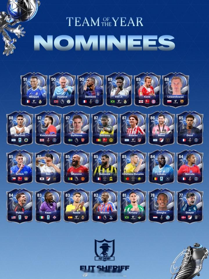 EAFC26年度蓝候选:门将:库尔图瓦、多纳鲁马、阿利松、奥布拉克、拉亚、诺伊尔、斯维拉尔后卫:范戴克、加布里埃尔、萨利巴、塔、巴斯托尼、马尔基尼奥斯、孔德、帕乔、门德斯、施洛特贝克、库库雷利亚、邓弗里斯、略伦特、拉赫马尼、范德芬、格伊、赫伊森、米特尔施塔特、劳姆、拉提乌中场:萨拉赫、贝林厄姆、佩德里、亚马尔、拉菲尼亚、巴尔韦德、维蒂尼亚、基米希、穆西亚拉、帕尔默、赖斯、德容、凯塞多、巴雷拉、奥利塞、吉马良斯、尼科·威廉姆斯、赫拉芬贝赫、路易斯·迪亚斯、麦克托米奈、格里马尔多、马赫雷斯、斯蒂勒、霍伊别尔、多萨里、堂安律、恩梅查、奥尔索里尼、安古伊萨、托利索、阿克利乌舍、埃万德、帕斯、伊尔迪兹前锋:姆巴佩、哈兰德、登贝莱、维尼修斯、凯恩、莱万、劳塔罗、克瓦拉茨赫利亚、约克雷斯、吉拉西、阿尔瓦雷斯、梅西、杜埃、希克、孙兴慜、姆伯莫、本泽马、C罗、卢卡库、巴尔科拉、普利西奇、基恩、阿约泽·佩雷斯、马特塔、安东尼、埃梅加、安德斯·德雷尔