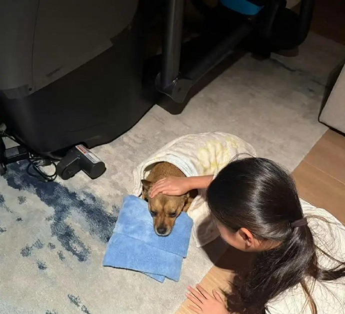 近期,孙俪晒女儿背影,11岁小花与领养狗狗超有爱!穿兄妹装背影像邓超