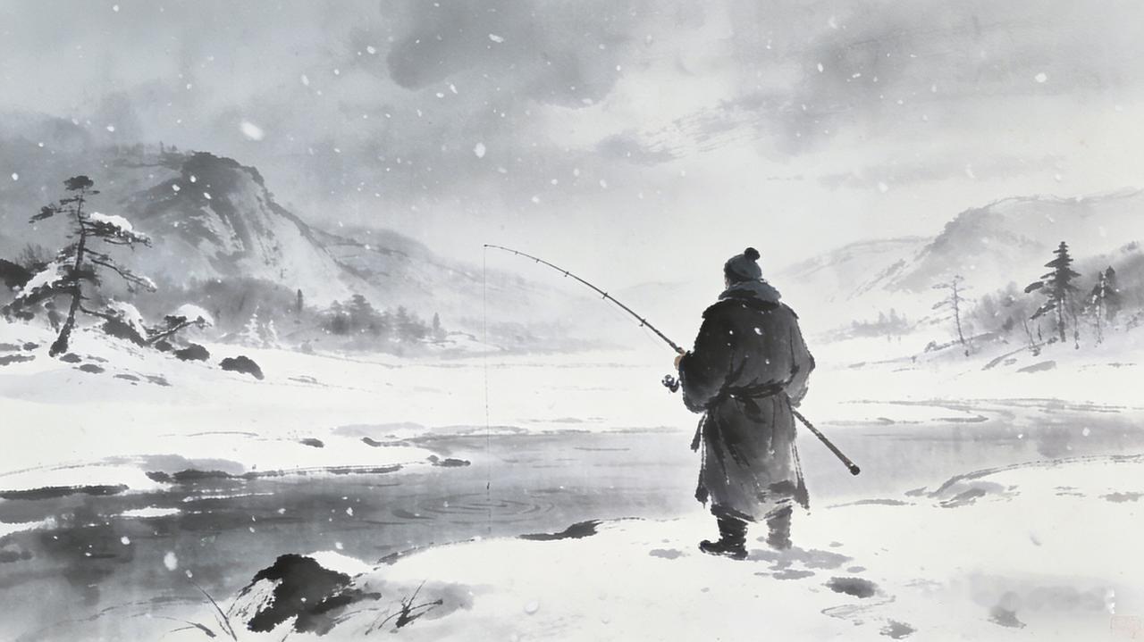 千山寂, 万径灭。 孤舟一叶, 蓑笠翁, 独钓寒江雪。 雪无声, 风冽冽, 一竿撑起, 天地间, 风骨与清绝。