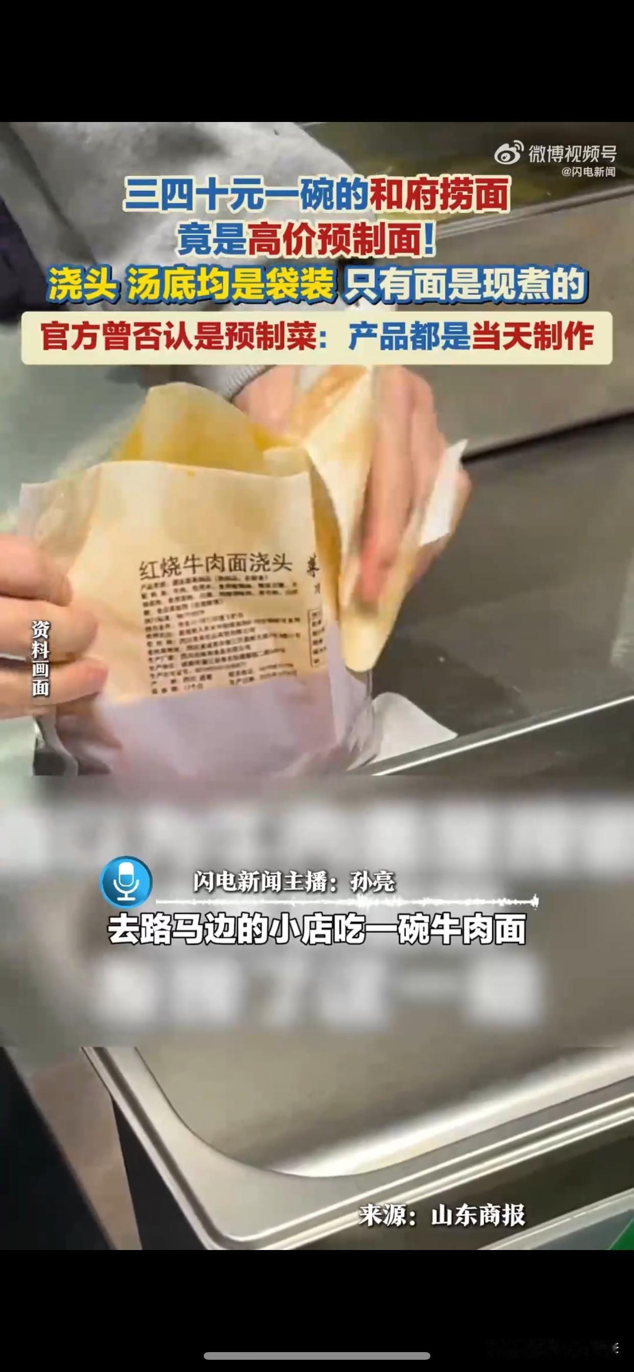 现煮面条难掩信任赤字:餐饮透明化才是破局关键! 和府捞面“仅面条现煮,汤底浇头皆为预制”的舆情风波,本质是品牌宣传与消费体验的严重错位。打着“书房养生”“匠心慢熬”的高端旗号,客单价高达三四十元,实际却是拆包复热的便捷操作,难免让消费者生出“花高价吃豪华泡面”的被欺骗感。 争议核心从来不是预制菜本身,而是信息不透明带来的信任裂痕。在国家推动预制菜明示的政策导向下,和府捞面将中央厨房配送的预制食材称为“非预制菜”,显然是在玩文字游戏,忽视了消费者的核心诉求——知情权。消费者并非排斥预制菜的高效便捷,而是反感“被隐瞒”,反感为“现制体验”付费却得到工业化产品。 实践证明,透明化才是餐饮行业的破局之道。连锁餐饮依赖中央厨房实现标准化无可厚非,但不能以模糊概念、隐瞒信息为代价。当“去厨师化”的效率追求与“烟火气”的消费期待发生碰撞,诚信沟通远比话术辩解更有效。 餐饮行业的竞争早已超越口味本身,信任才是长效竞争力。和府捞面的舆情警示我们:无论模式如何创新,都不能背离“真实”底线。主动公示加工方式,让消费者明明白白消费,才能在预制菜争议中站稳脚跟,这既是对消费者权益的尊重,也是行业高质量发展的必然要求。
