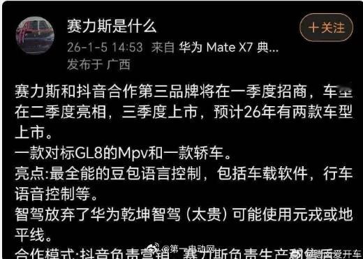 字节没有造车计划 有消息称字节和车企联合造车,字节跳动相关负责人回应没有造车计划但字节有豆包AI大模型、传播优势,车机端非常有可能,字节+赛力斯这个组合真的有点儿意思赛力斯