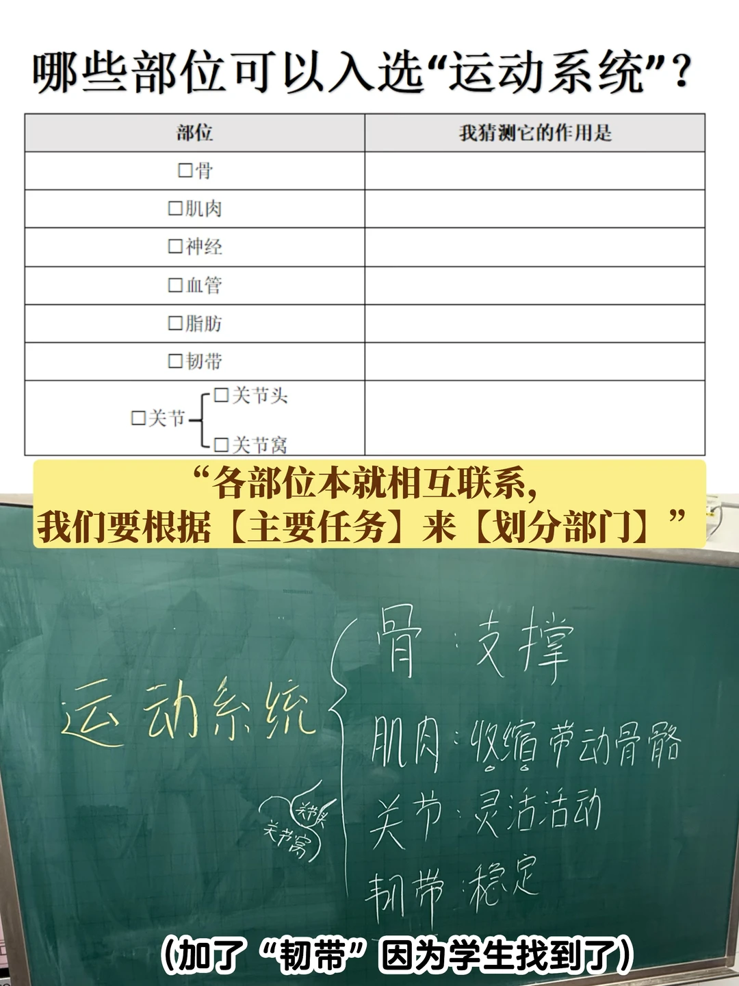 🔴如果要选几个成员汇入【运动系统】“部门”,你认为谁能加入?为什么?它的作用是什么?