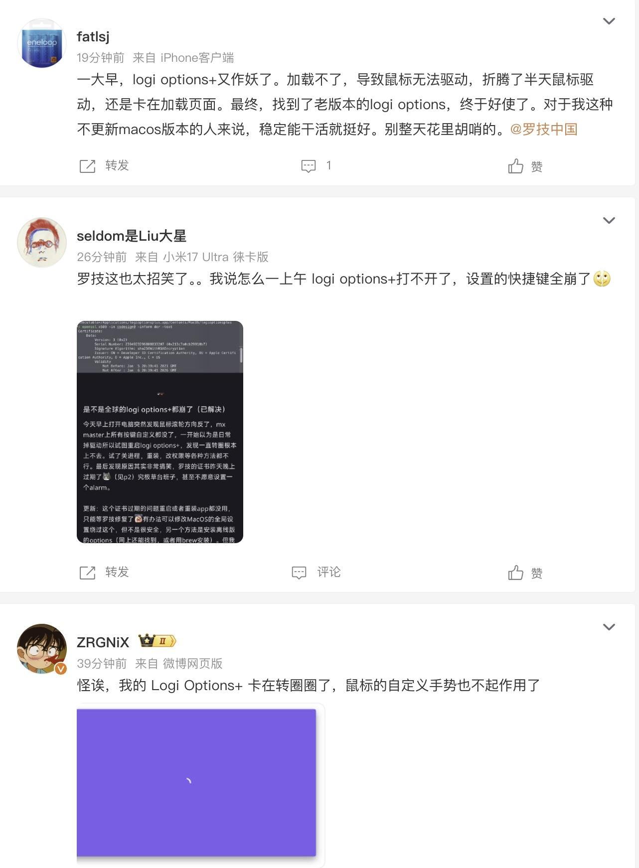 今天早上罗技鼠标的软件崩了,鼠标的自定义按键功能都用不了,到现在还没恢复大家受到影响了吗?据说是罗技的 SSL 证书过期了,导致服务断线