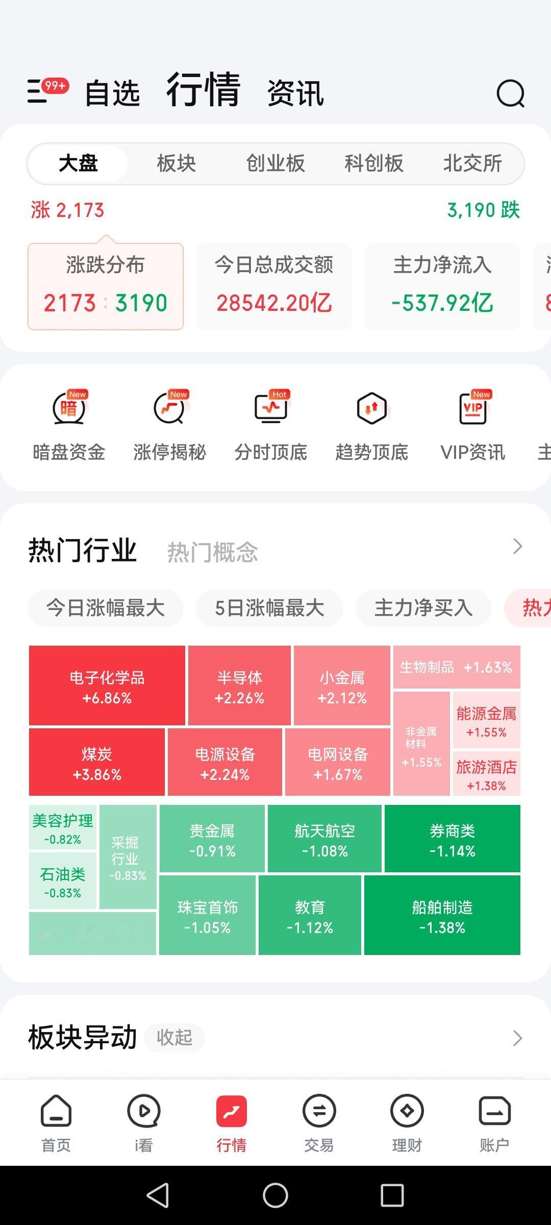 忙忙碌碌,忙里偷闲才能看眼股票和基金,三大指数虽说还是上涨了,但是上涨的个股变少了40%上涨,昨天涨的厉害的有回落。 上证剑指4100点,最高到了4098!历史高位! 放量2.8万亿,主力流出537亿。 电子化学品,煤炭,半导体等领涨。 航空航天,券商等领跌。 上证指数