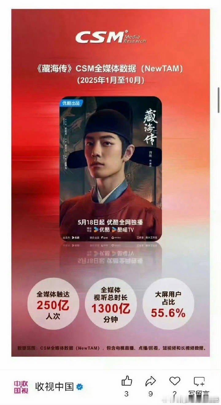 CVB收视数据发布 受不了成毅粉丝了,还在说人次数和户次数是一回事,一户次数约等于≈3人次数,接受吧,全年最冷档期播出接0.4底盘的《藏海传》6.4亿人次>>>>全年最高开机率最热档期播出接高盘的长安24计5.2亿人次