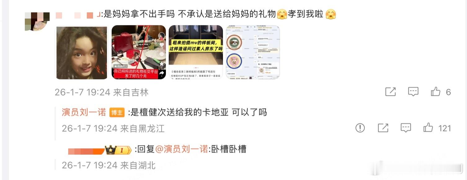 果然粉丝越刺激,嫂子说越多。刘一诺在线和粉丝battle:卡地亚是檀健次送的。再来我会发出更多。 刘一诺 是檀健次送我的卡地亚