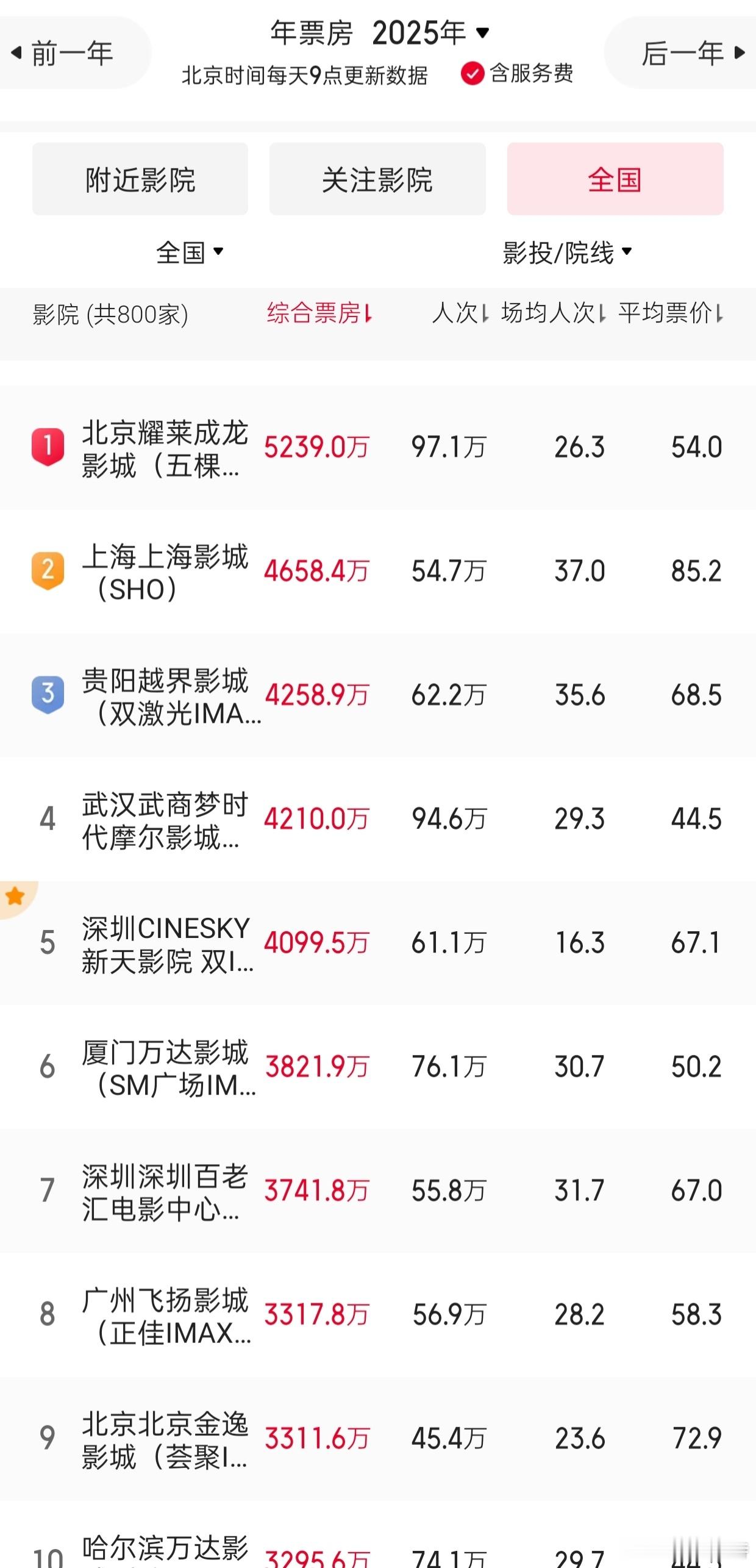 听听温特怎么说2025年全国十大影城,北京耀莱成龙五棵松影城票房和人次继续夺冠,上海影城夺得亚军,贵阳越界影城凭借哪吒IMAXgt夺得季军,哈尔滨万达也凭借IMAXgt杀入前十,武汉武商梦时代人次第二名。北京深圳两个影城进入前十。