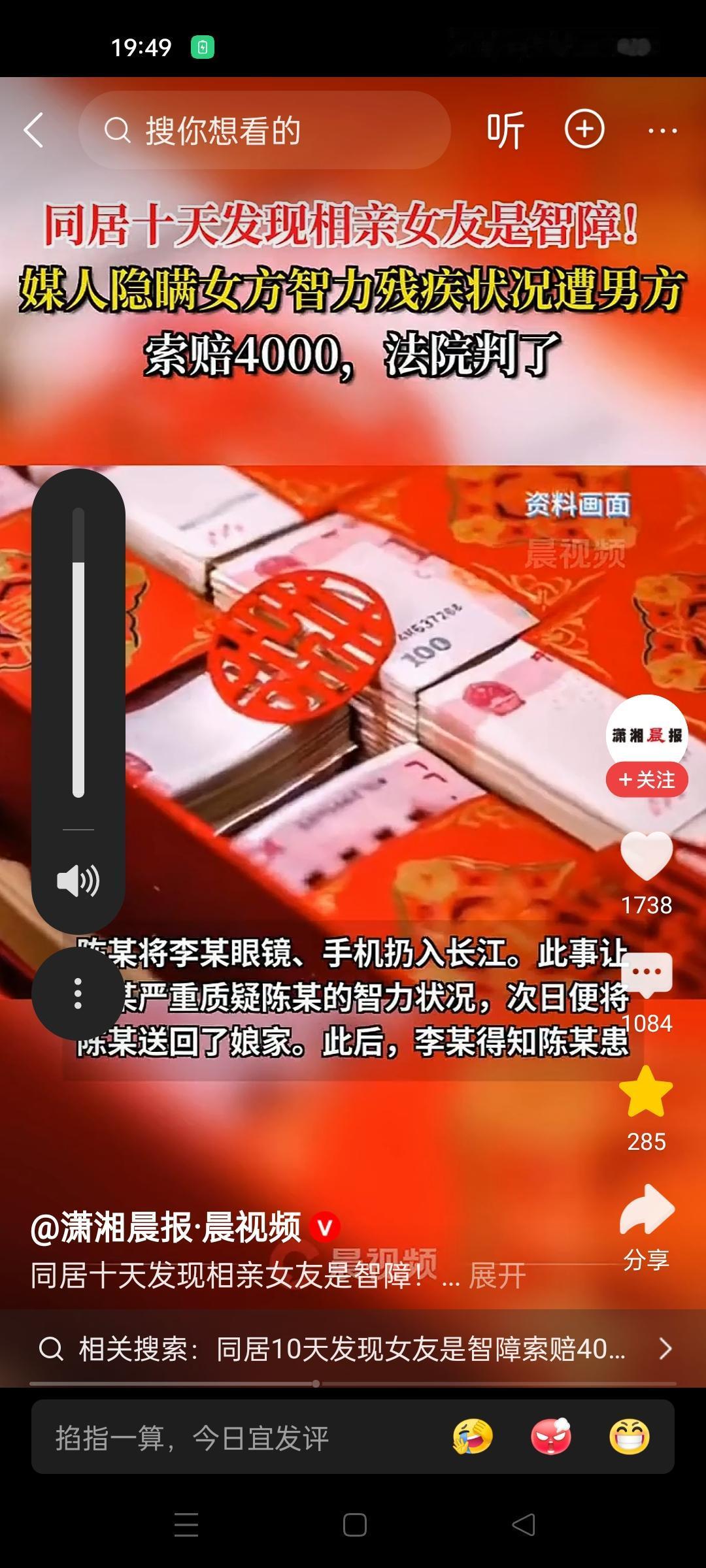 同居十天才发现相亲女友是智障,重庆李先生这事儿,真是耐人寻味! 重庆李先生,通过相亲认识了一位26岁的女人。李先生觉得这个女孩还不错,心里挺愿意。俩人没见几次面,他就送过去了2万元彩礼钱,给了媒人4000元的感谢费,然后俩人同居在了一起! 没想到十天后,俩人在江上游玩的时候发生了争执,女人一气之下,把李先生的眼镜手机都扔到了江里。女人这个举动让李先生心生忐忑,于是他偷偷去调查了一下,这才知道,原来自己的同居女友是智力障碍二级患者! 李先生觉得受了骗,就把对方告上了法庭,要求返还2万元彩礼和4000元感谢费。法院经过判决,让女方退还了1万彩礼钱,让媒人退还了2000元的介绍费。 有人说李先生不地道,十天的同居生活还看不出对方的智力情况啊,为什么十天后才说,难道是想白嫖这十天吗? 也有人说,李先生是受害者,被对方骗了!到底这其中是啥情况,真的是耐人寻味呀!