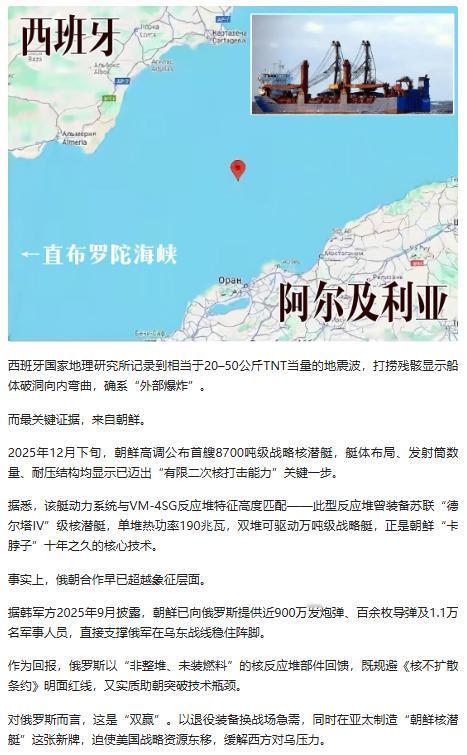 看了唐驳虎主笔写到《真相报》揭露 “大熊座” 号货轮沉没内幕的文章后,满心震撼又满是疑惑。 一艘俄货轮携疑似核反应堆部件赴朝,却在国际水域离奇沉没,看似事故实则是精准打击。 俄朝的 “军火 - 技术” 交换、朝鲜渴望的海基核威慑、大国暗中的博弈,都藏在这场沉默的海上事件里。 没有国家承认袭击,俄改口却不指元凶,美西方保持缄默,这场 “集体失语” 背后藏着怎样的权衡? 被拦截的核部件虽未抵达,可技术路径已打通,未来东北亚格局会如何变动?这场水下的灰色战争,还藏着太多未被揭开的秘密。