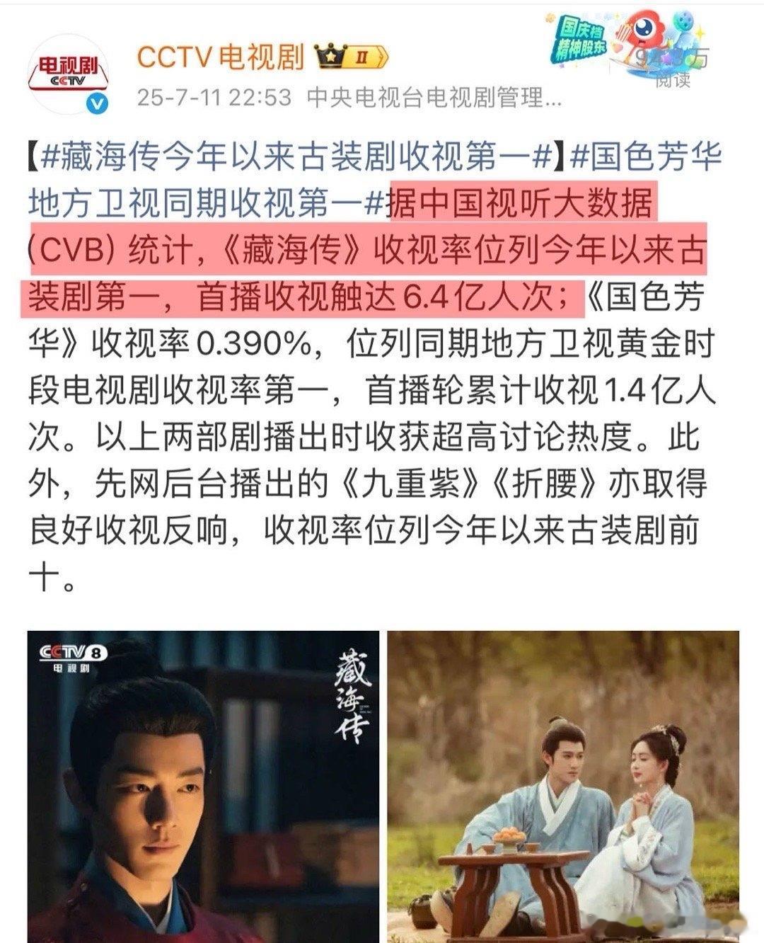 肖战《藏海传》上星🌟实绩表现突出,户次4.2亿,人次6.4亿,户次和人次不是一个概念,拿下上半年古装剧收视第一