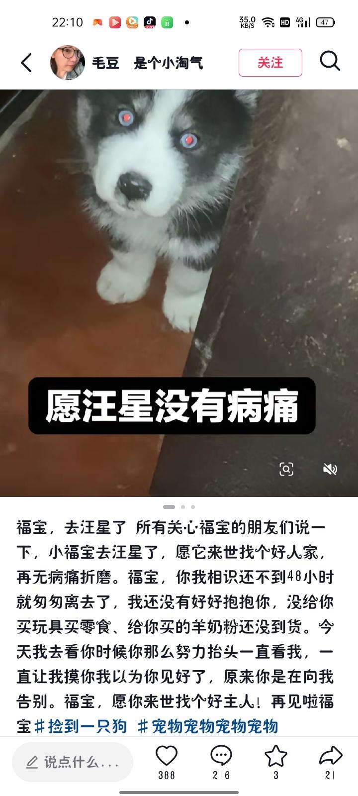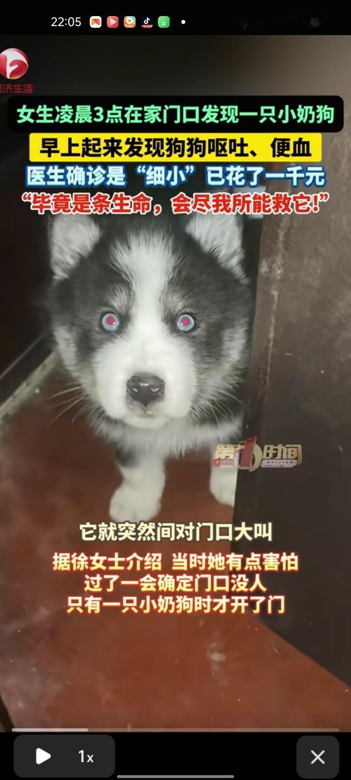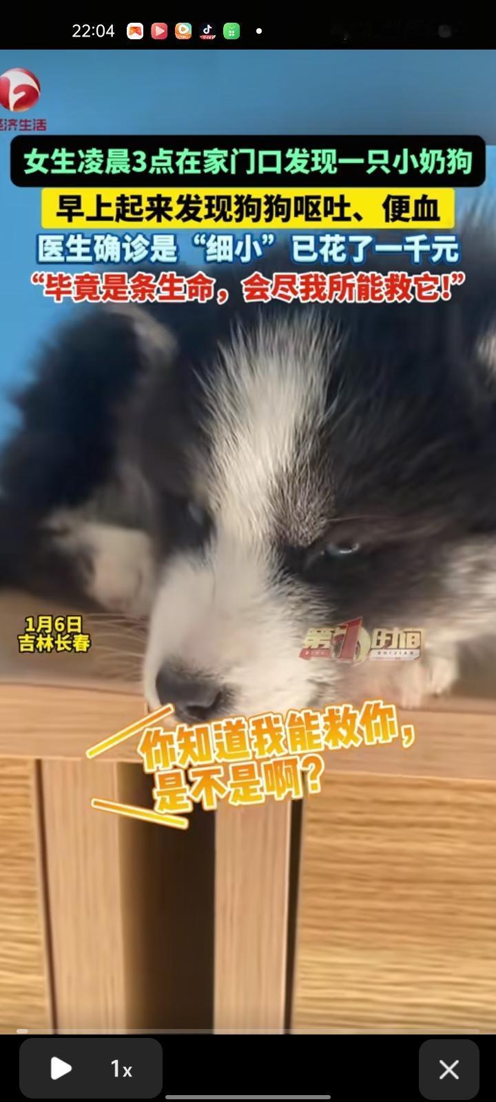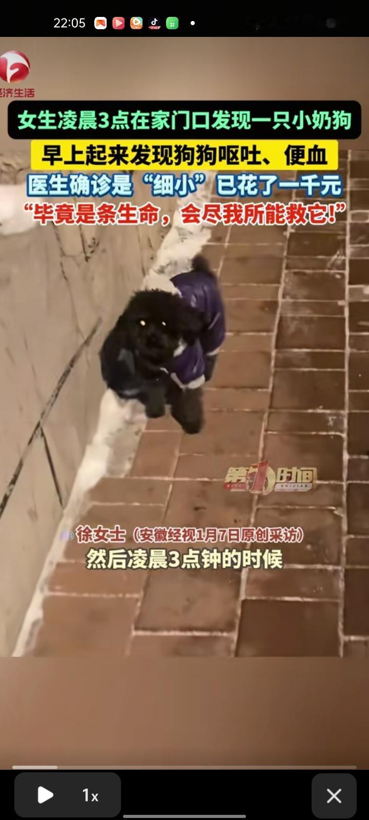 1月6日,吉林长春。女子自己有了小泰迪,凌晨三点在家门口发现一只小奶狗。她表示,自己有点害怕,过了一会确定门口没人,只有一只小奶狗开了门。 次日早上,女子发现小奶狗状态不好,出现呕吐、便血的情况,带它去宠物医院后,医生确诊“细小”花费了1000元。遗憾的是,这只小奶狗还是离世去汪星了。