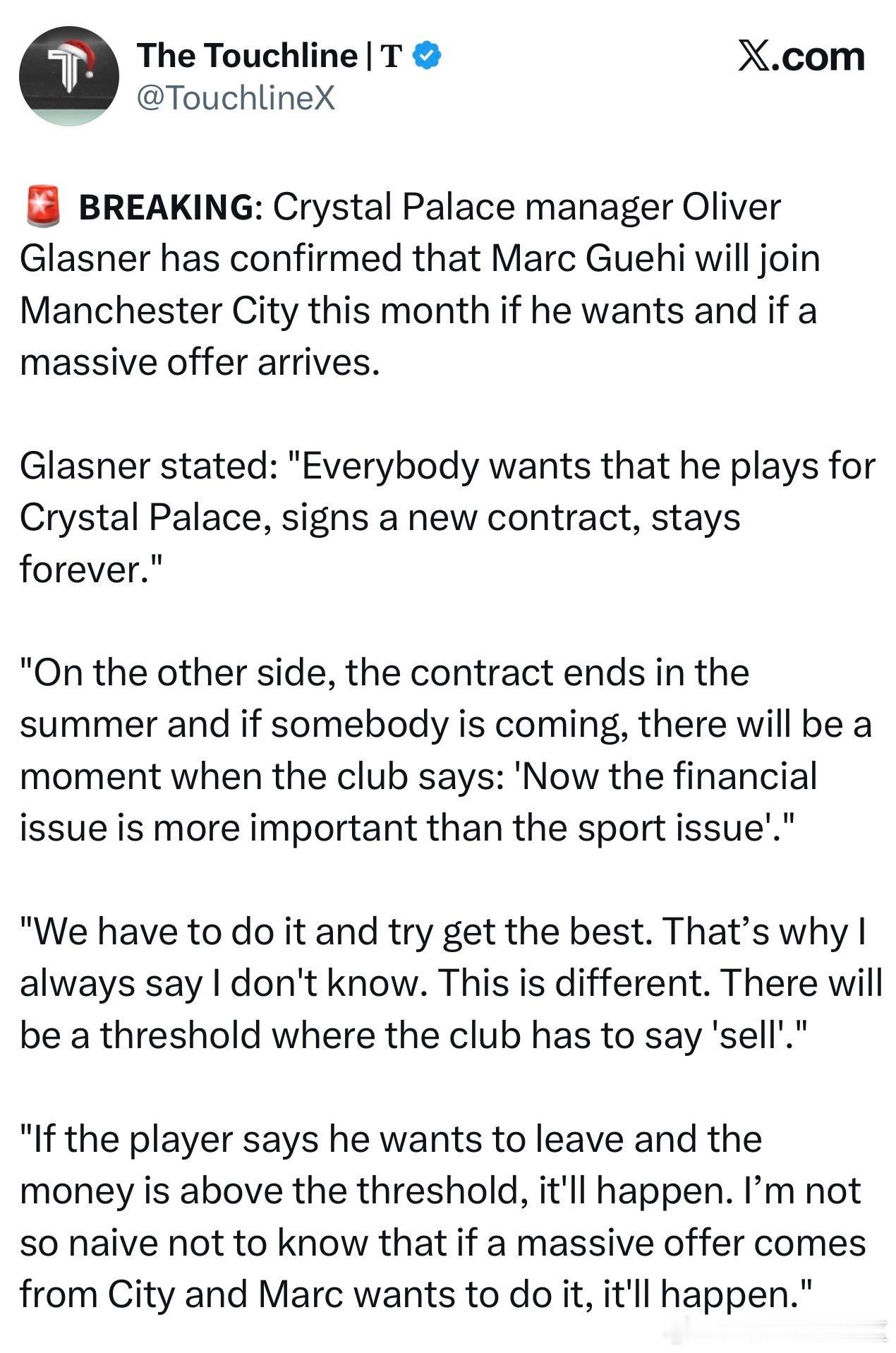 只有我军球迷难过的夜晚是要达成了,塞梅约去曼城黑喂狗。水晶宫主教练在接受采访时表示如果曼城给出高额报价而格伊本人又想走那这笔转会就会发生