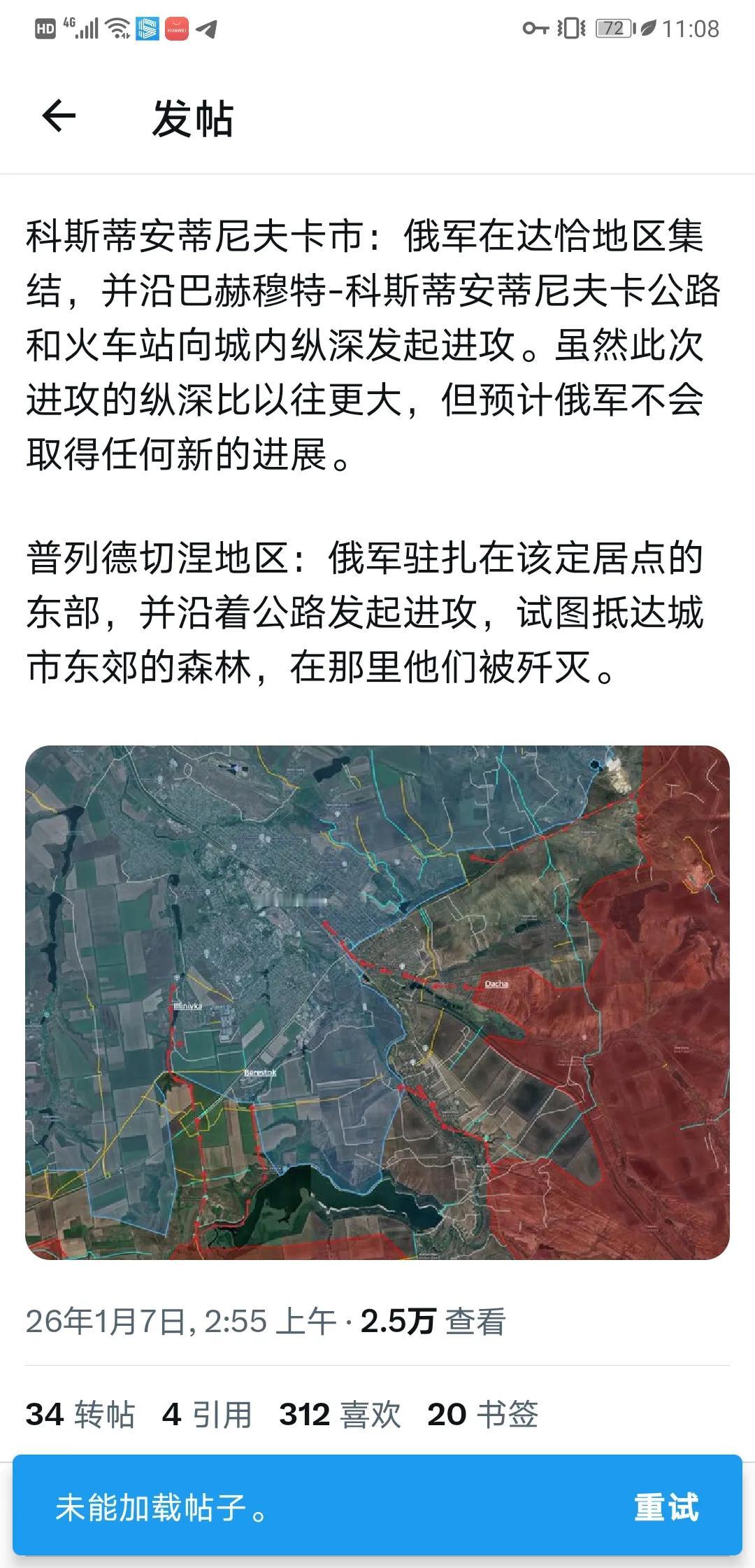 俄罗斯从多路向康斯坦丁诺夫卡,进行试探性进攻,但仍未成功。 图中红色箭头是进攻方向,或未来可能进攻位置。 这个冬季攻势,康城应该是重点。