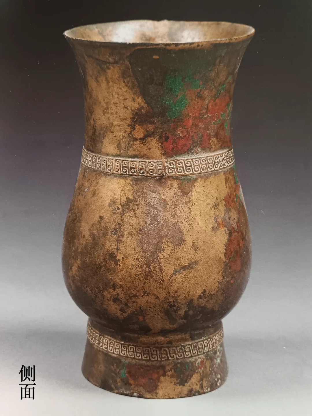 器物介绍: 收藏单位:宝鸡青铜器博物院。 器型:敞口、束颈、鼓腹、矮圈足。横截面呈椭圆形。 尺寸:口径9X7.4厘米、通高13.7厘米,容积445毫升,重量:463克。 纹饰:颈部、圈足处纹样一样,各饰一周勾连云纹。 铭文:内底铸有铭文:明亚X父乙。 器物出土地及来源:1966年后,宝鸡陇县出土。