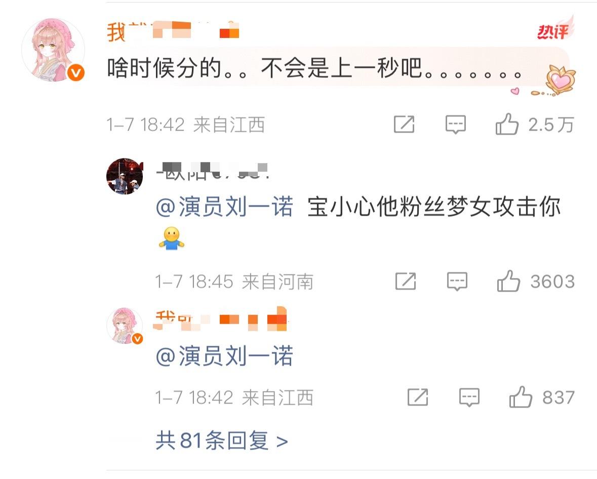 檀健次刘一诺 已分手评论区,网友们好损,这时候粉丝别去刺激她吧
