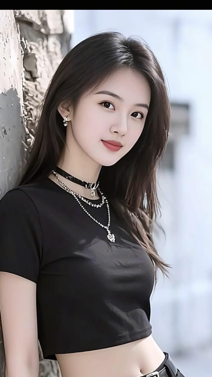 都市女孩的时尚穿搭,黑色短款上衣搭配精致项链,尽显时尚魅力!