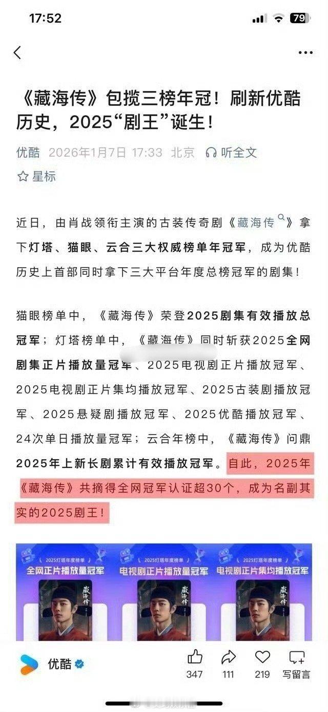 肖战《藏海传》成为2025优酷剧王实至名归肖战