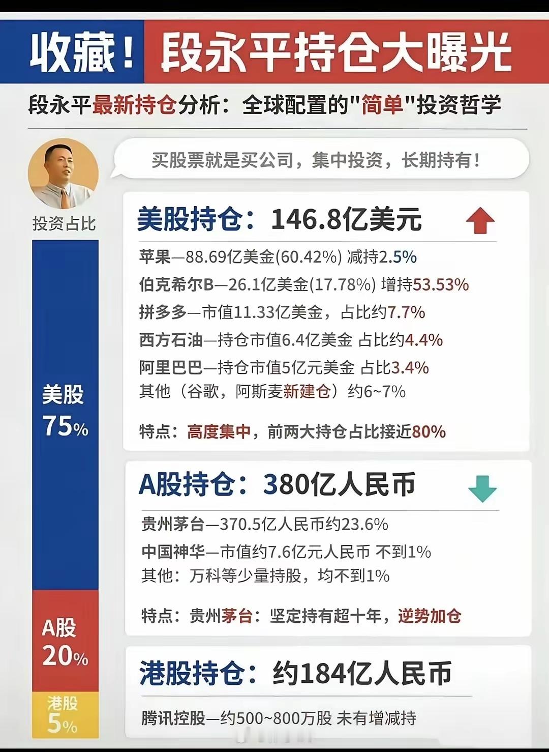 段永平赚了多少钱?照片里面快一千五百亿了,段说有不少是朋友的,他帮忙理财,但阿段自己,估计小一千亿是有的投资到底有多重要?资本主义社会,投资是核心中的核心比较下王石和段永平,王石放弃了万科的股票,拿着一千万的工资,如果早早投资苹果、巴菲特公司,身家早不一样了,估计他没有这样的认知,在大佬圈,王石的身家啥也不是王石也很努力,尝试几次创业,都失败了。万科现在生意不好,王石的一千万工资也停了,目前确实是老婆养着他,于是我们都听说婚姻也出现危机了阿段呢?四十几岁,早早退休了,整天游山玩水,打打高尔夫球,然后买对了股票,财富在滚雪球式的增长,然后就是百亿身家了爱因斯坦说过,“复利是世界第八大奇迹财经观察官