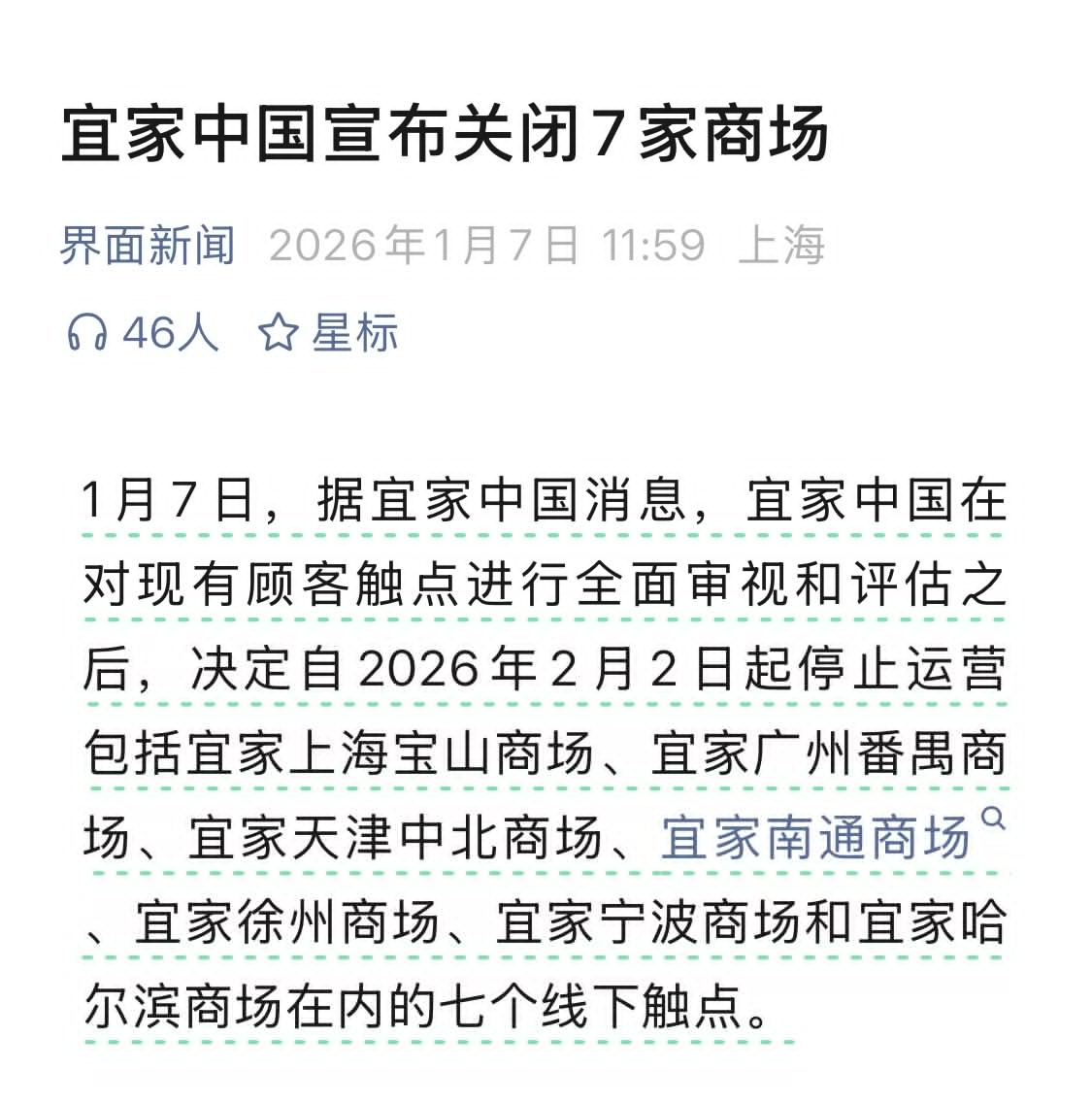 主打性价比的宜家日子也不好过,日前宣布关闭7家国内商场。