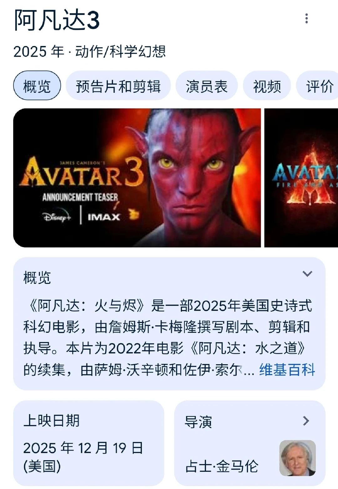 12月19日 阿凡达3:火与烬 Avatar 3