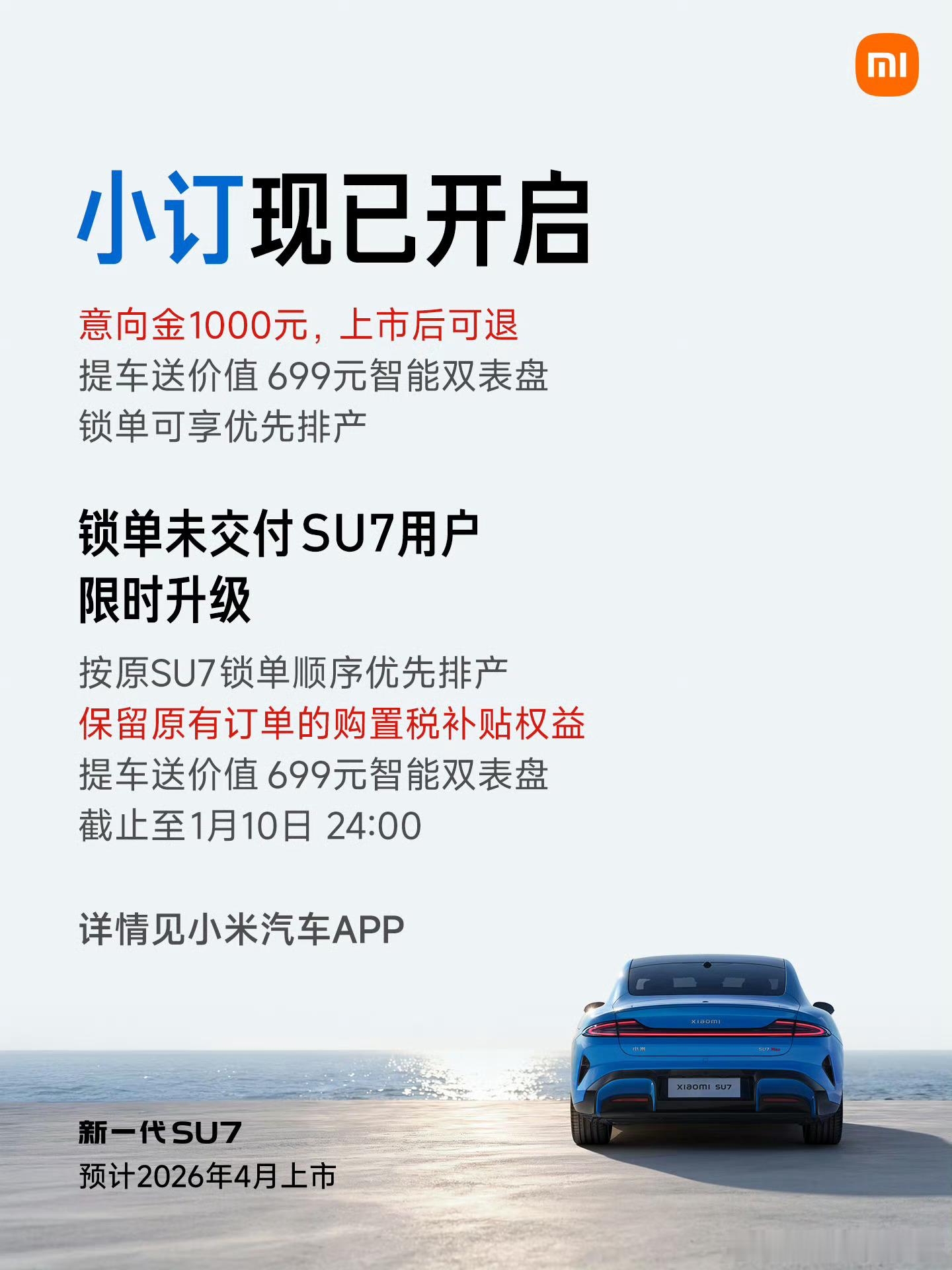 雷军回应被指背刺老车主这次小米SU7改款远远谈不上背刺,原因非常简单首先改款这种事,大家基本都懂,现在都是一年一改像小米这样两年一改的就已经很少了,尤其是很多一年改几代的车,这种事都是偷偷摸摸干,小米是直接拿上来公开、透明来讲另外改款这个消息,从去年末就已经传到现在了,你如果真去店里问过车,非常容易就能知道,所以就看你是想早提车,还是继续等还有一个最重要的点是,小米是提前三个月公布改款信息,那么意思就是这三个月已经不卖老款了,后续的车主也可以免费升级新款,还同样享有权益,这怎么能算背刺?或者你这么看,假设你是刚提车没多久的车主,可能看着这次升级很大,会有一些小意见。但你仔细一看就会发现,你真等新款的话,可能要等半年以上才能提到车,到时候你都已经爽开很久了