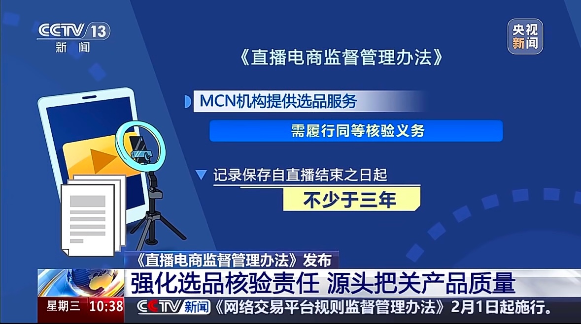直播电商新规强化AI内容监管直播电商出新规了!电商从业人员可以仔细看看。直播带货的“电子案底”来了:所有记录必须存证三年,Ai主播也有新规定。私域直播之前没有相应规定,现在连聊天记录都要归档备查;MCN机构再也不能用“临时工”搪塞,从招募到话术全链担责。违规账号有了流量管制,限流,或者停止直播功能。看来直播间货不对版的情况要变少了。有的商品经过P图,滤镜,买过来的完全不是同一件。AI数字人直播须全程亮明身份,Ai电商内容也会强化。规矩定得再细,关键还在执行,现在数据保存三年,管理起来会更清晰了。分析:【直播电商新规强化AI内容监管】电商直播回放至少保存3年 今天,市场监管总局、国家网信办联合