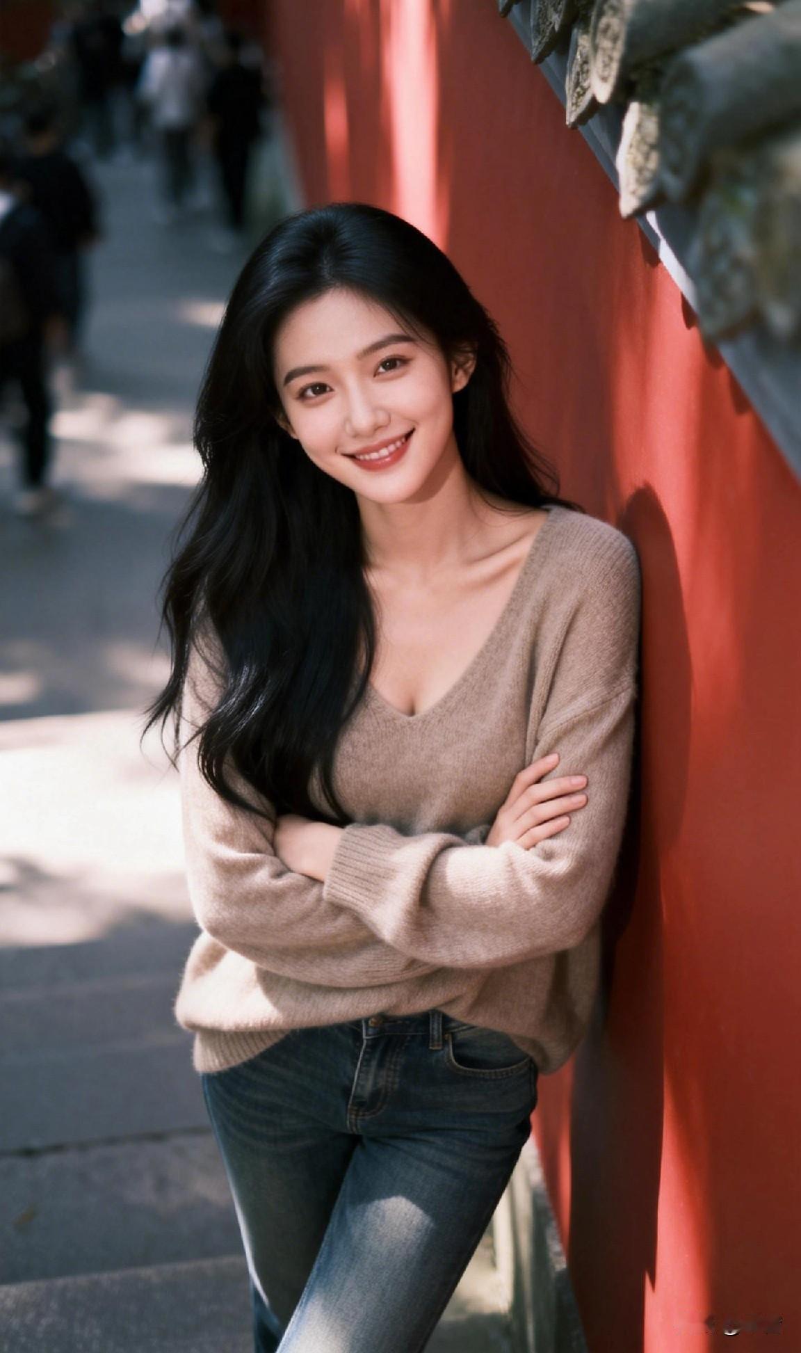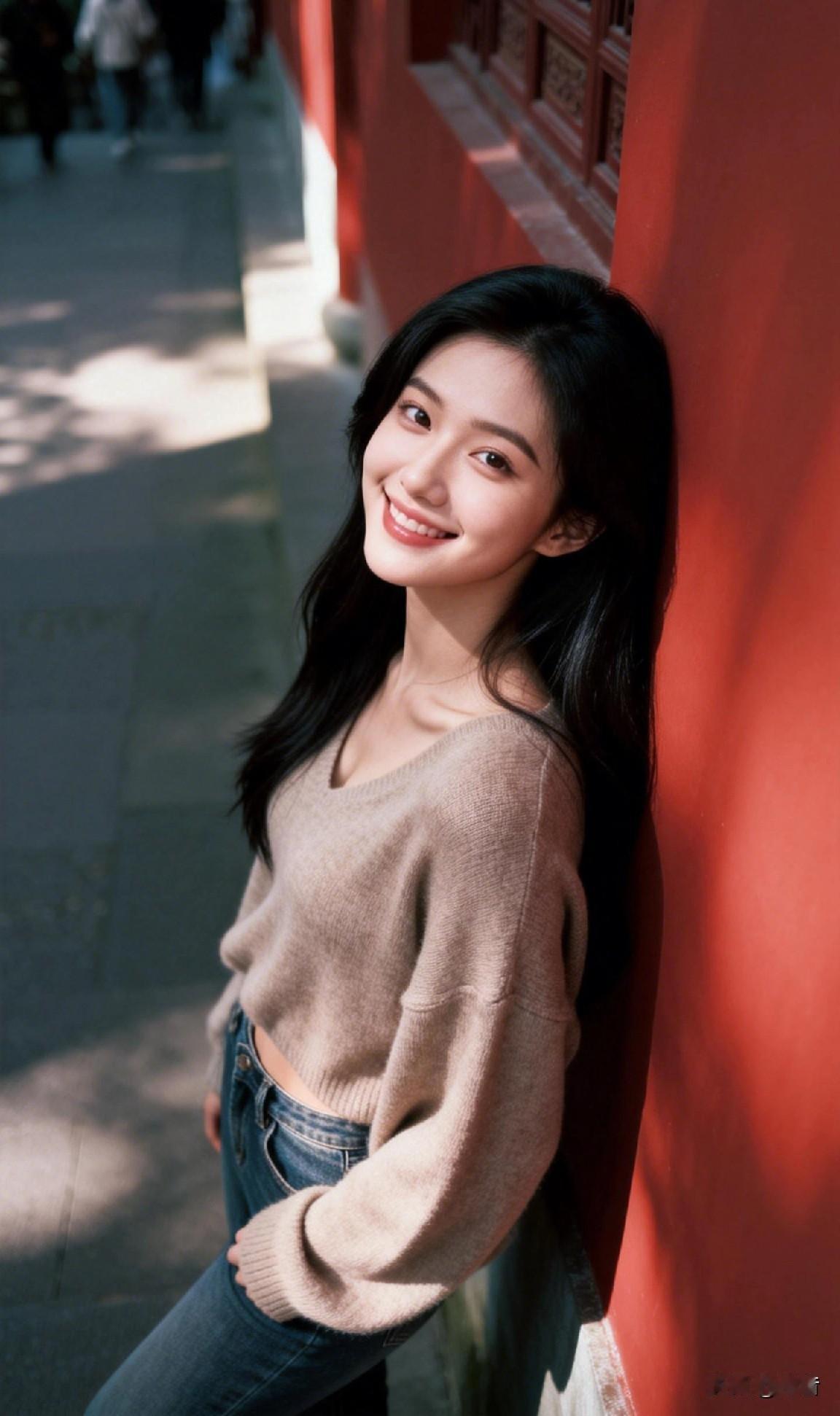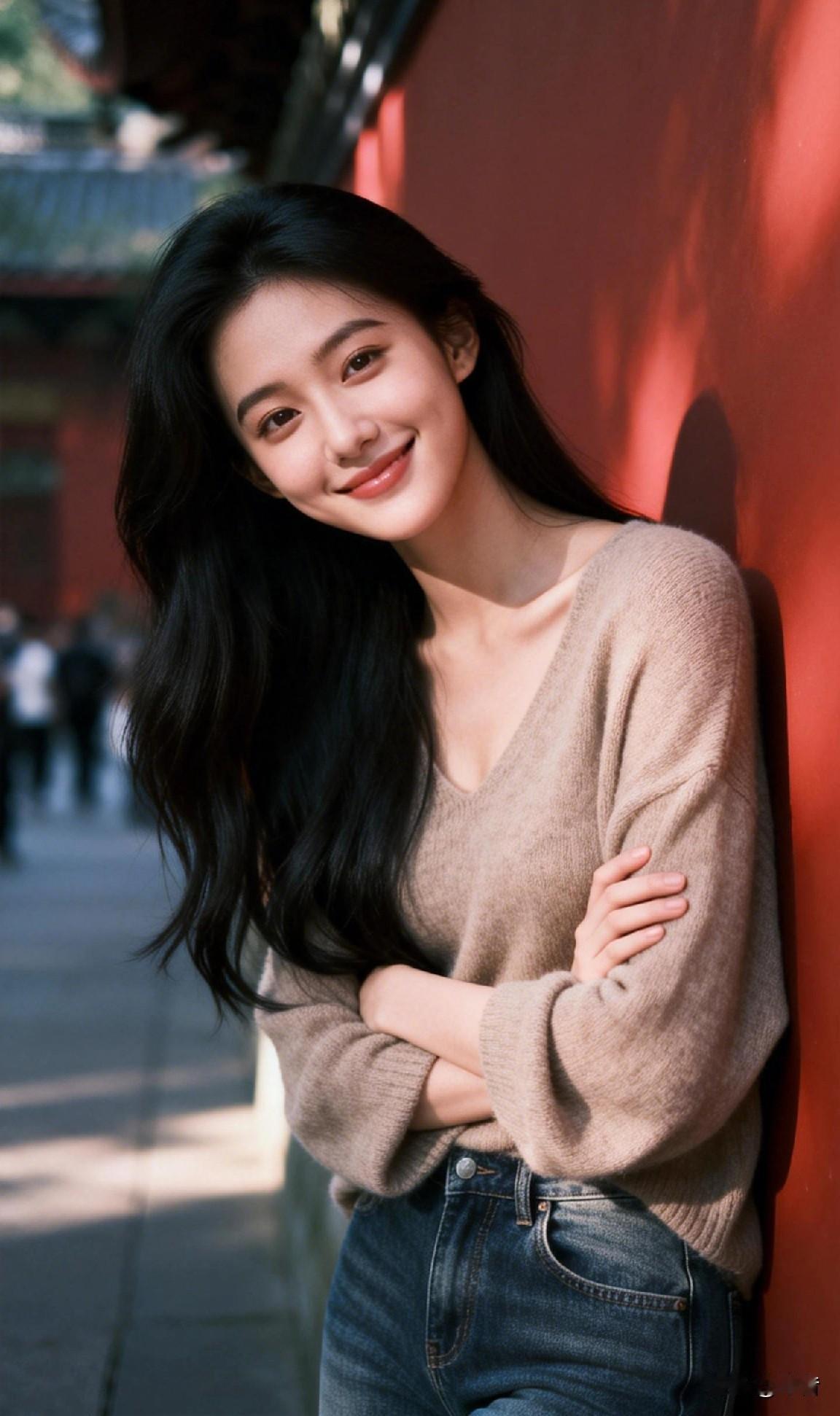 她倚着斑驳的木门 你看见的,是朦胧一瞬 还是故事里未说尽的篇章?