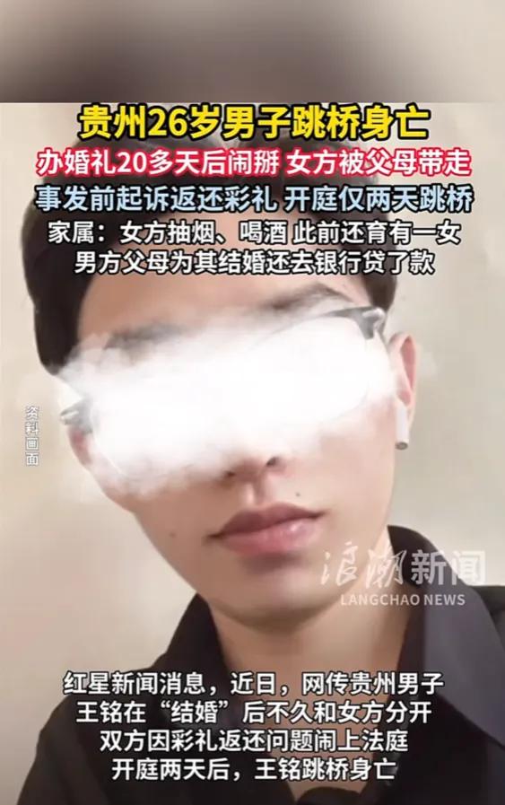 又一起因为彩礼引发的悲剧。贵州二十六岁男子王某娶二婚女。结婚22天分手。女的二十四岁,离过一次婚,有一个女儿,女的有不良嗜好,抽烟喝酒。因为抽烟喝酒两个人才吵架的。 王某和女方是通过相亲认识的,在农村,26岁的年纪早就是家里催婚的重点对象,王某的父母看着儿子的婚事有着落,心里急着把事儿定下来,哪怕知道女方有过婚史还带着孩子,也没多犹豫。为了给儿子办这场婚礼,老两口不光掏空了家底,还向亲戚朋友借了钱,甚至去银行贷了5万元的款,本以为能换来儿子的安稳日子,没想到这场婚姻只维持了22天就碎了。 吵架的导火索就是女方的抽烟喝酒习惯,王某觉得刚结婚该好好过日子,女方的这些嗜好既伤身体又不像过日子的样子,可女方压根没把他的话放在心上,争执之下,女方被父母接回了家,这一走,就再也没回来。婚离了,可结婚花出去的彩礼和各项开销成了绕不开的坎,王某想着自己家为了这场婚礼背了债,便起诉女方要求返还彩礼,可庭审时女方的说法让他彻底懵了——女方称自己置办嫁妆、办酒席花了13万,加上红包等费用,反倒要求王某返还19万余元。 这场彩礼纠纷还没等来判决,王某就在开庭两天后选择了跳桥身亡。26岁的小伙子,没扛住这场婚姻带来的压力和纠纷,留下了背负债务的父母。这事里最让人揪心的,是农村婚恋里的畸形现状:不少家庭为了结婚掏空积蓄甚至举债,把彩礼当成了婚姻的“敲门砖”,却忽略了两个人是否真的适合过日子。相亲介绍时,女方的过往和生活习惯被刻意淡化,王某一家只盯着“结婚”这个结果,也没去深入了解彼此,才让这场婚姻从一开始就埋了雷。 很多农村家庭觉得彩礼是“嫁女的脸面”,却不知道没领结婚证的婚姻不受法律保护,彩礼返还也有明确的法律规定。王某如果能多了解一点法律知识,或者能找到更理性的方式解决纠纷,或许就不会走上绝路。而这场悲剧也该让更多人明白,婚姻不是一场买卖,彩礼更不该成为压垮生活的重担。 各位读者你们怎么看?欢迎在评论区讨论。