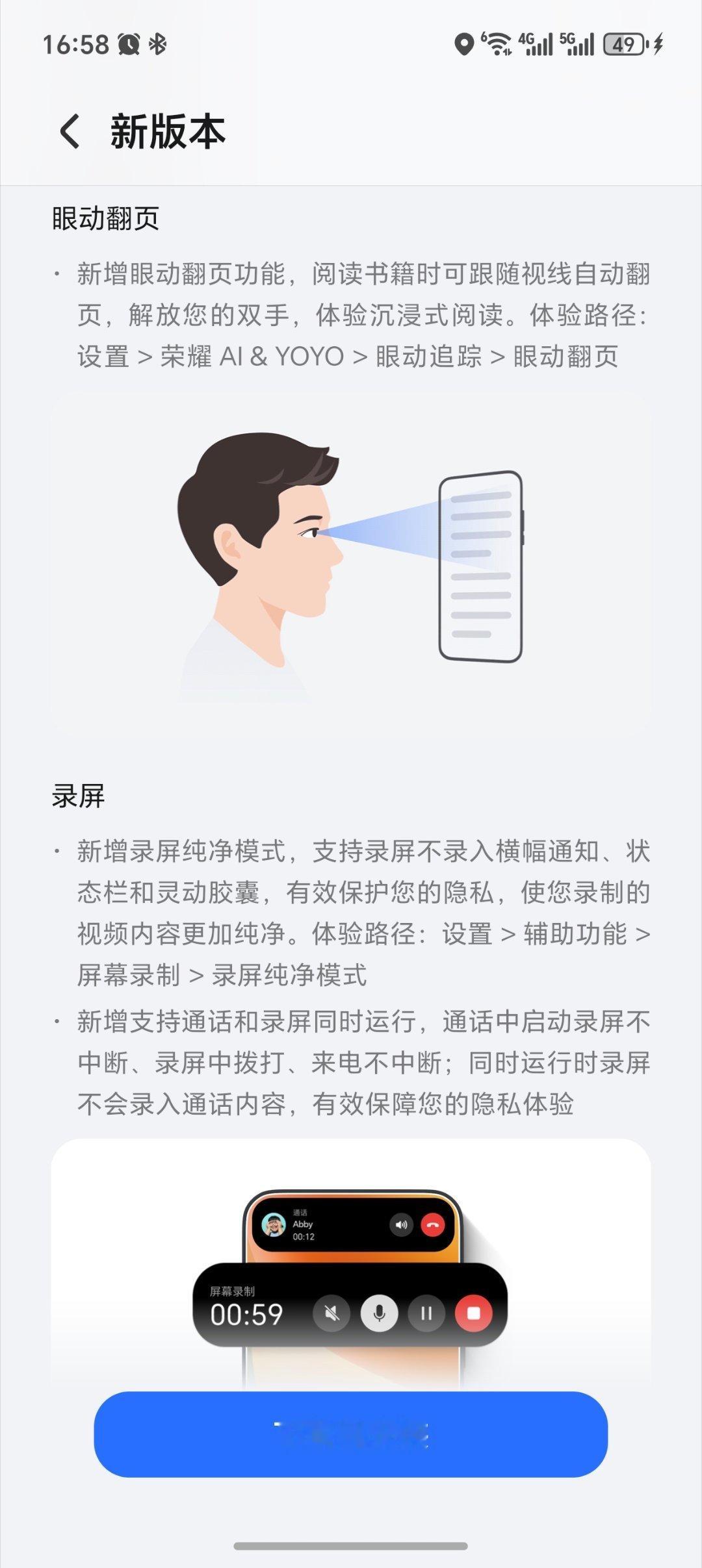 Magic8 Pro又有新版本了,新增了眼动翻页,对于喜欢在手机上看电子书的小伙伴来说,这个功能应该很好用吧。另外就是录屏纯净模式,不会录入状态栏、灵动胶囊和横幅通知这些,挺好的。之前就有好几次在录屏过程突然弹个消息,然后就,没有然后了最近一直在用这个机子,顺带测试一下微曲屏有没有好的贴膜可以选择了。就是,现在已经废了好几个,都不太行。新的一张卖家跟我说全覆盖边缘不会割手,要是不行就退钱。还没到,等到了试试。不行就还是得再探再报了。这会还是裸奔状态,害怕。