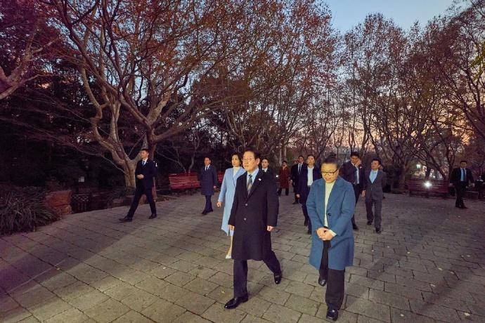1月7日!李在明和夫人金惠景参观上海鲁迅公园。 李在明和夫人金惠景一起参观上海鲁迅公园,在夕阳的映衬下就像一副电影画面,两人都穿风衣亮相,尤其是韩国夫人的淡蓝色大衣非常精致,给人一种安静柔和的气氛,另外韩国夫人金惠景还搭配一件白色的高领毛衣,更是有了八十年代的味道,处处都透露一种复古端庄的气息。而李在明的小款风衣也很上镜,当时他们身边人还非常少,要是不知道韩国总统和夫人的话,还真以为是那对明星过来散步。不得不说李在明和夫人不仅人品好,还很会打扮,这次来北京上海访问获得了很多网友的好感。