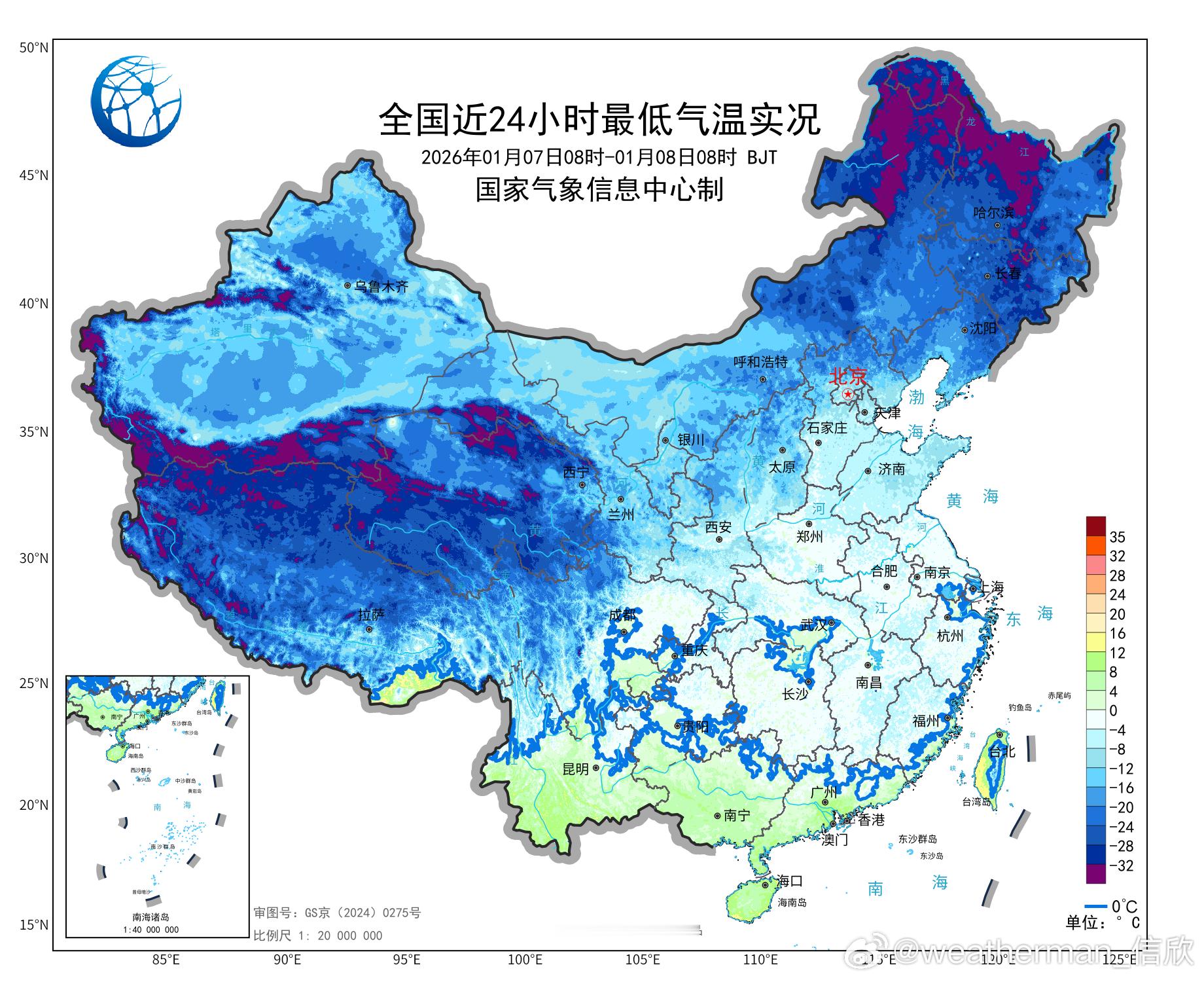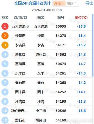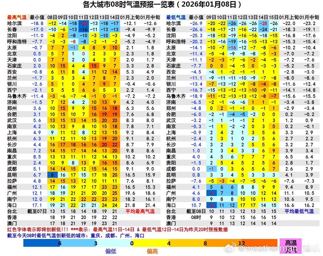 【冷】今晨东北多地因为冷空气影响,出现6-14℃降温。黑龙江五大连池降15.5℃、吉林桦甸降15.4℃、辽宁西丰降14.1℃,为各自省份8时降温最强站点。受到夜间晴空辐射降温影响,今晨南方气温依然低迷,最低气温0℃线位于华南北部,4个省会直辖市气温创立冬后新低:成都温江0℃、重庆沙坪坝4℃、广州4.6℃、海口10.7℃。
