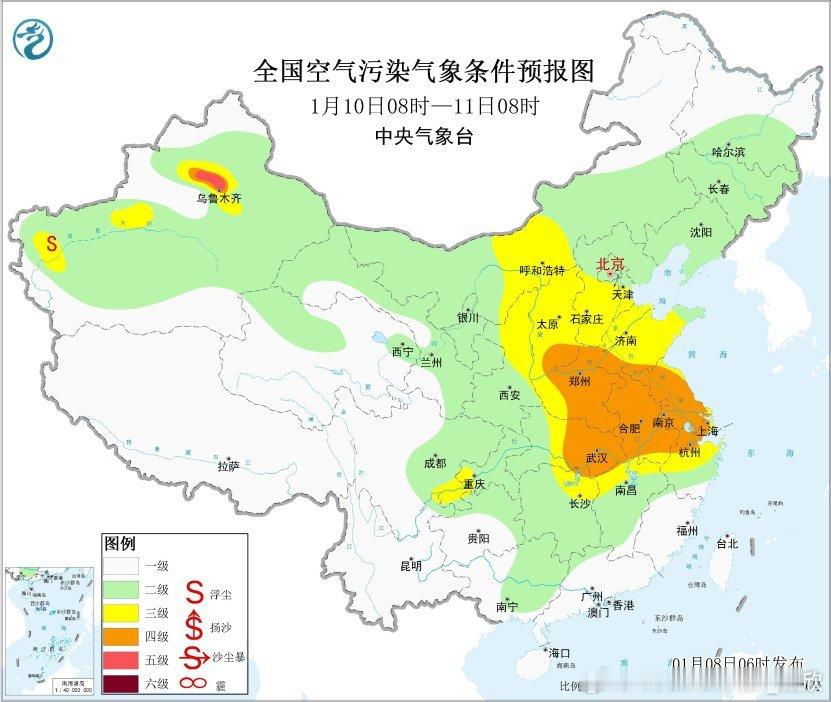 【雾 霾 沙尘】今晨没有大规模的雾和霾,但依然有局地的零散分布。从8时能见度看,重庆万州57米、涪陵73米、开州91米、云南太华山68米、贵州正安68米、广东德庆75米、四川渠县75米、。新疆天山南北两侧,局地还有重污染。短期内,雾和霾不会有显著的发展,但沙尘可能会增多。预计8日至10日,受冷空气大风影响,甘肃中西部、内蒙古中西部、宁夏、陕西中北部、华北、黄淮、江淮等地的部分地区自西向东将有一次沙尘天气过程,其中甘肃西部、内蒙古西部等地的部分地区有沙尘暴。